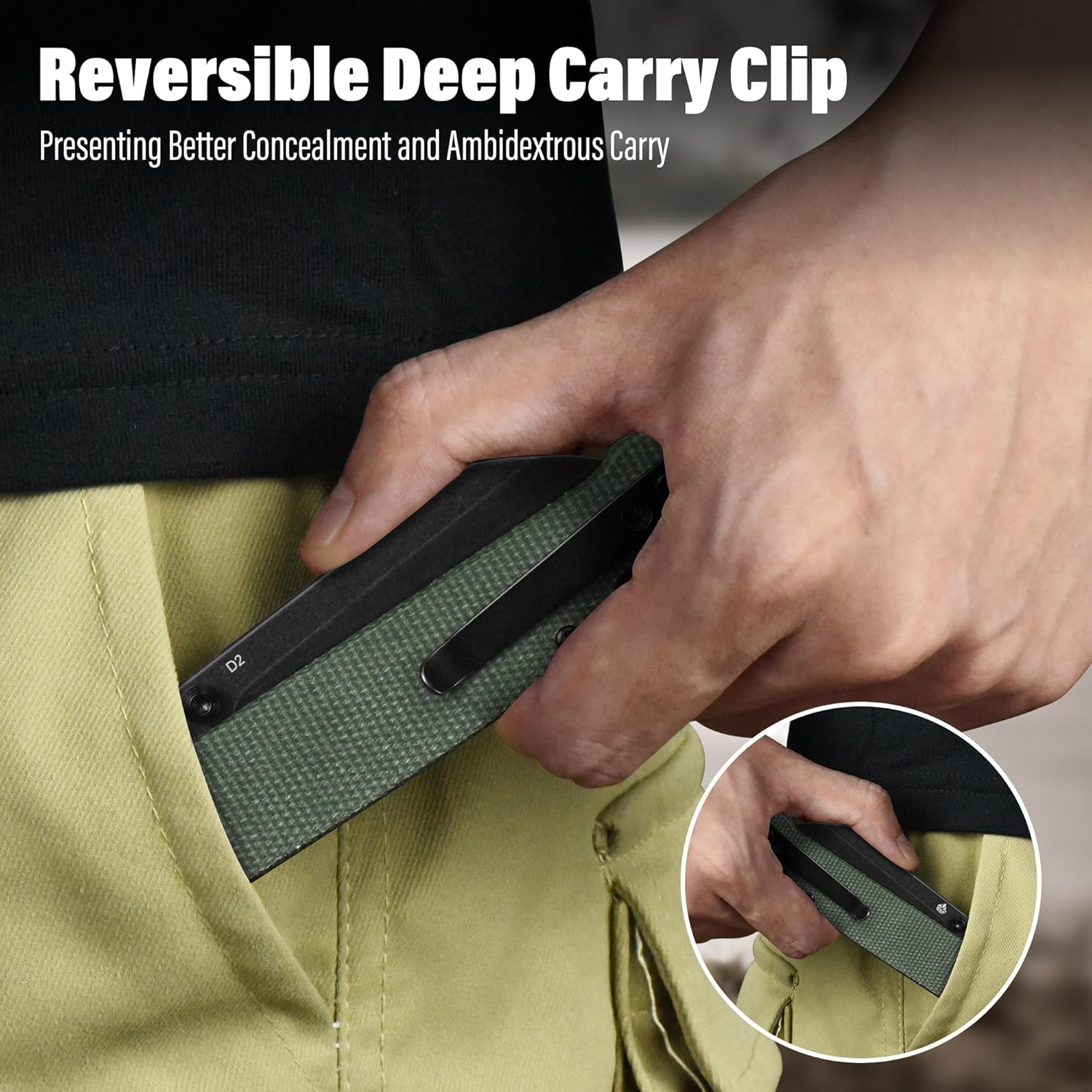 - Easy to Carry: This edc knife weighs only 3.28 oz and has closed length of 4 inches. It comes with reversible ss deep carry clip, making it easy to attach to your gear or clothing. Whether you are left-handed or right-handed, it is easy to use.