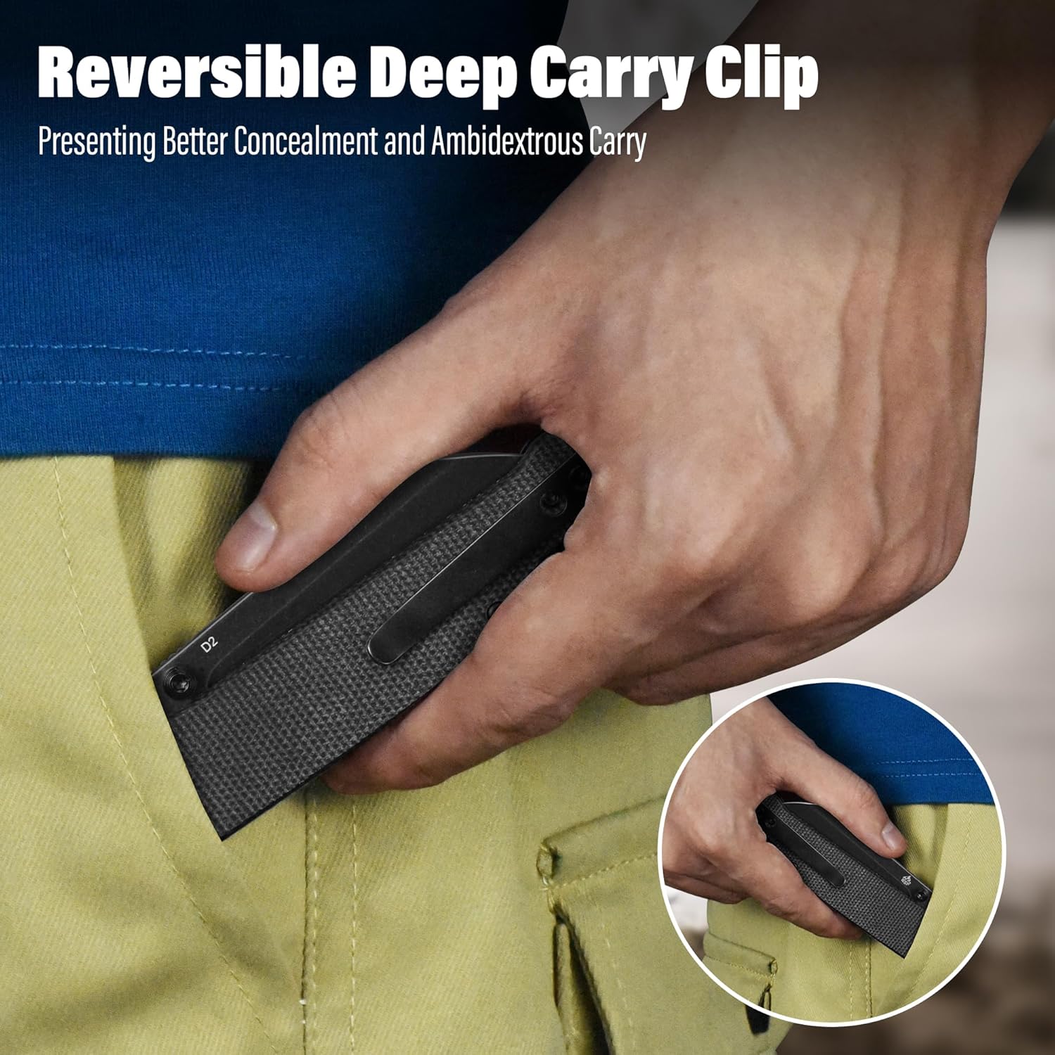 - Easy to Carry: This edc knife weighs only 3.28 oz and has closed length of 4 inches. It comes with reversible ss deep carry clip, making it easy to attach to your gear or clothing. Whether you are left-handed or right-handed, it is easy to use.