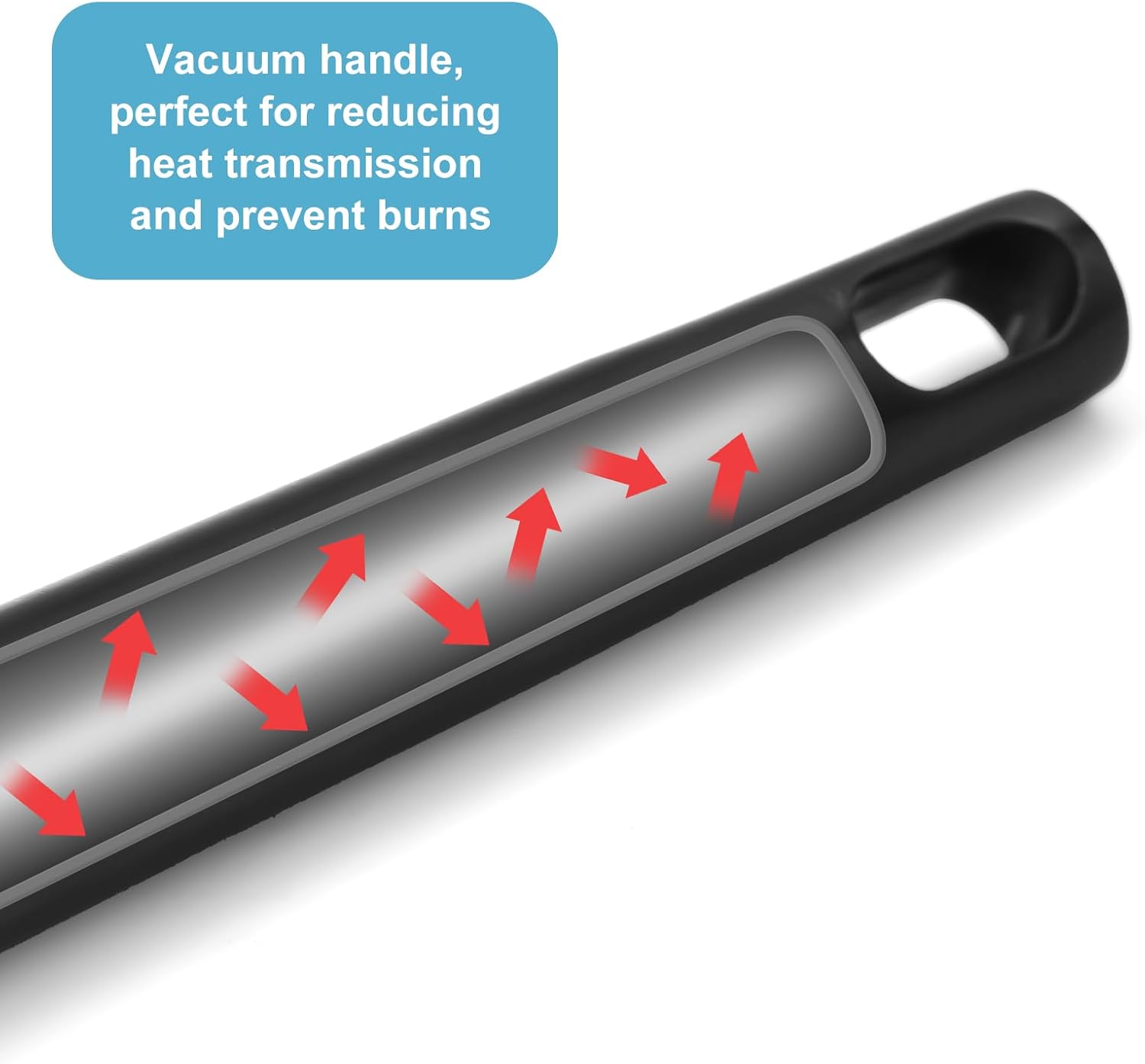 - 👐 Ergonomic Heat Resistance Anti-Slip Grip: This stainless steel ladle length: 13.8 Inches, suitable for most cooking utensils. Vacuum ergonomic round handle for easily holding, reducing heat transfer, not easy to burn your hands.