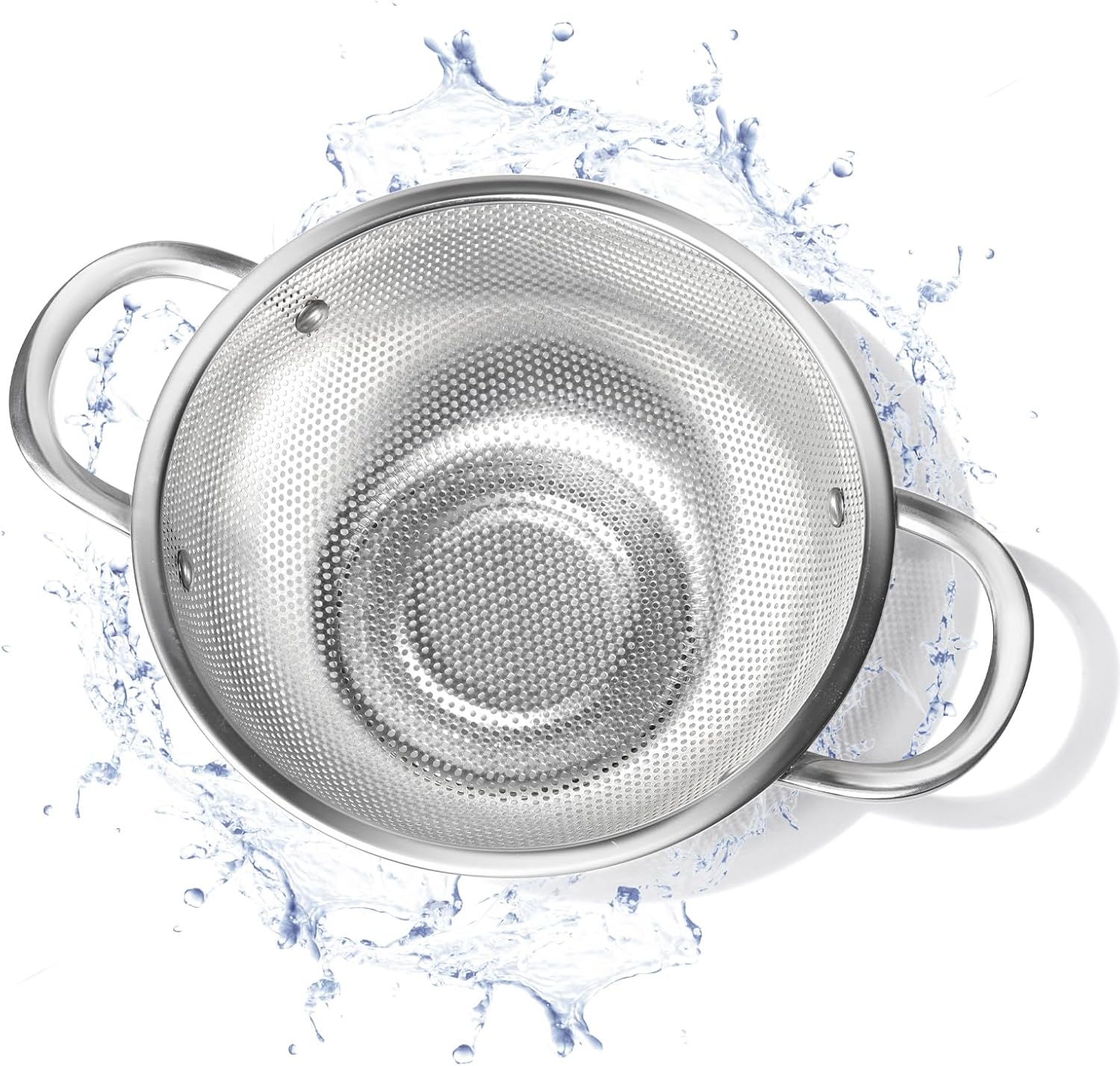 - 【Design】Designed with precision - punched micro holes, the colander offers superior drainage, quickly shedding water from freshly washed produce, cooked pasta, or strained sauces. The evenly spaced holes are small enough to prevent small items like quinoa or lentils from slipping through, while still allowing liquids to flow out rapidly, saving you precious time during food prep.