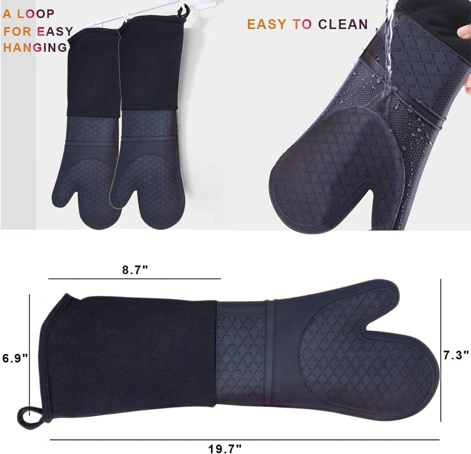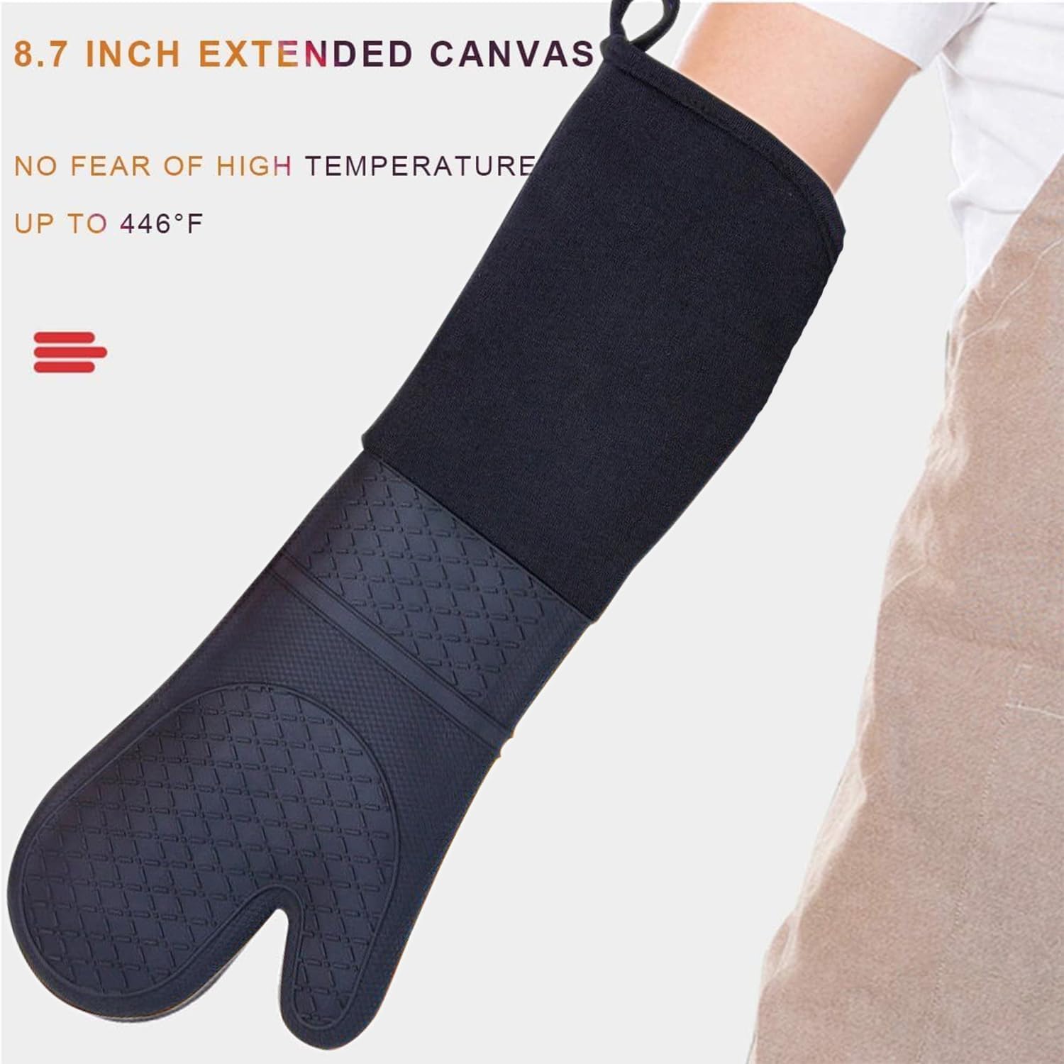 - Extra Long Design: 19.5" x 7.4", extra long sleeve, providing heat protection of forearms up to elbows,easy to clean and machine washable,a must-have tool/everyday essentials in every kitchen.