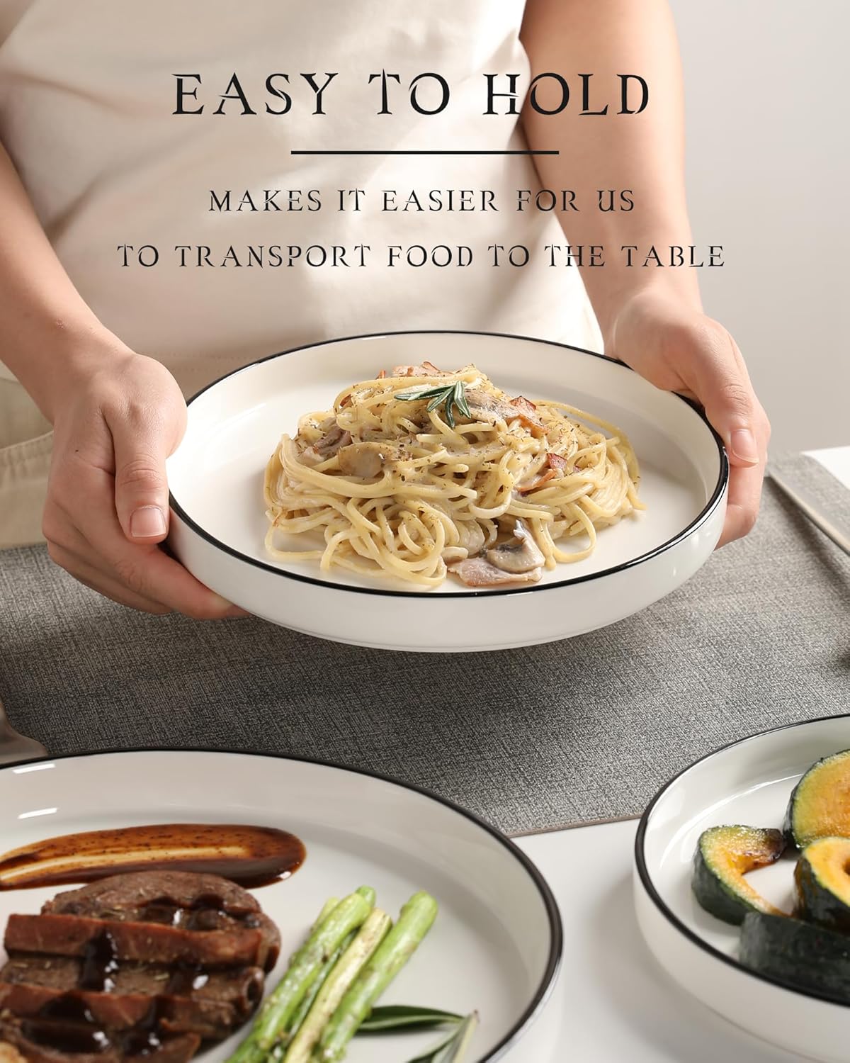 - Durable Ceramic Materials: The dinnerware sets for 6 made of ceramics calcined at high temperature, durable, heat and chip resistant, easy to clean, whitnout residue or odors, microwave and dishwasher safe