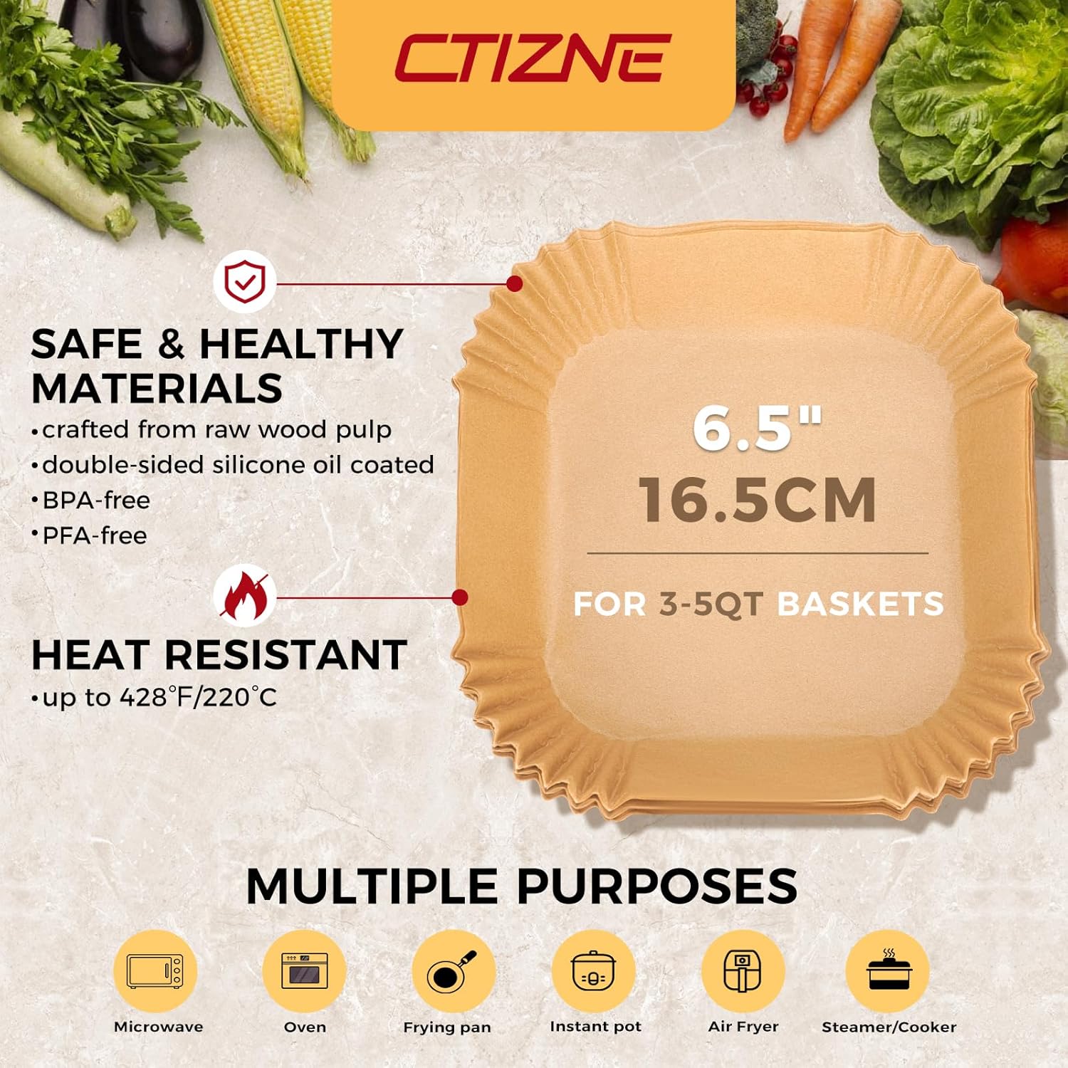 - Healthy Food Grade Material: Airfryer liners are made of 100% food-grade parchment and silicone oil coating. They are unbleached, BPA-free, PFAs-free, waterproof, oil-proof and non-stick. It can withstand temperatures up to 428Β°F.