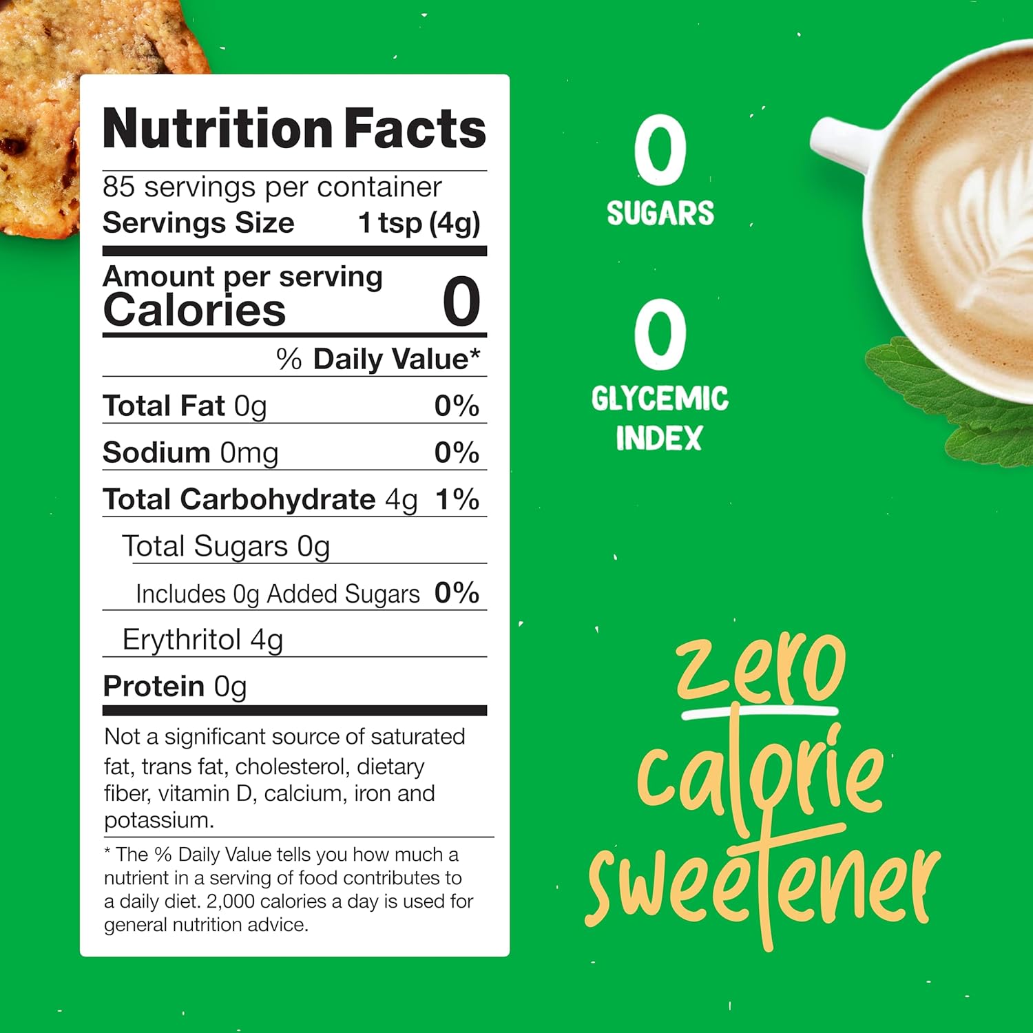 - 🚫ZERO SUGAR + ZERO CALORIE SWEETENER: Pyure Organic Stevia Sweetener contains zero sugar, zero carb, zero calorie, and has a zero glycemic index, making it the best sugar free granular sugar alternative. Pyure Organic is a natural, plant-based sweetener, made by blending the highest quality organic stevia leaf extract and organic erythritol that is always USDA Organic Certified, and Non-GMO Project Verified. Enjoy your favorite foods and beverages while keeping carbs and calories low.