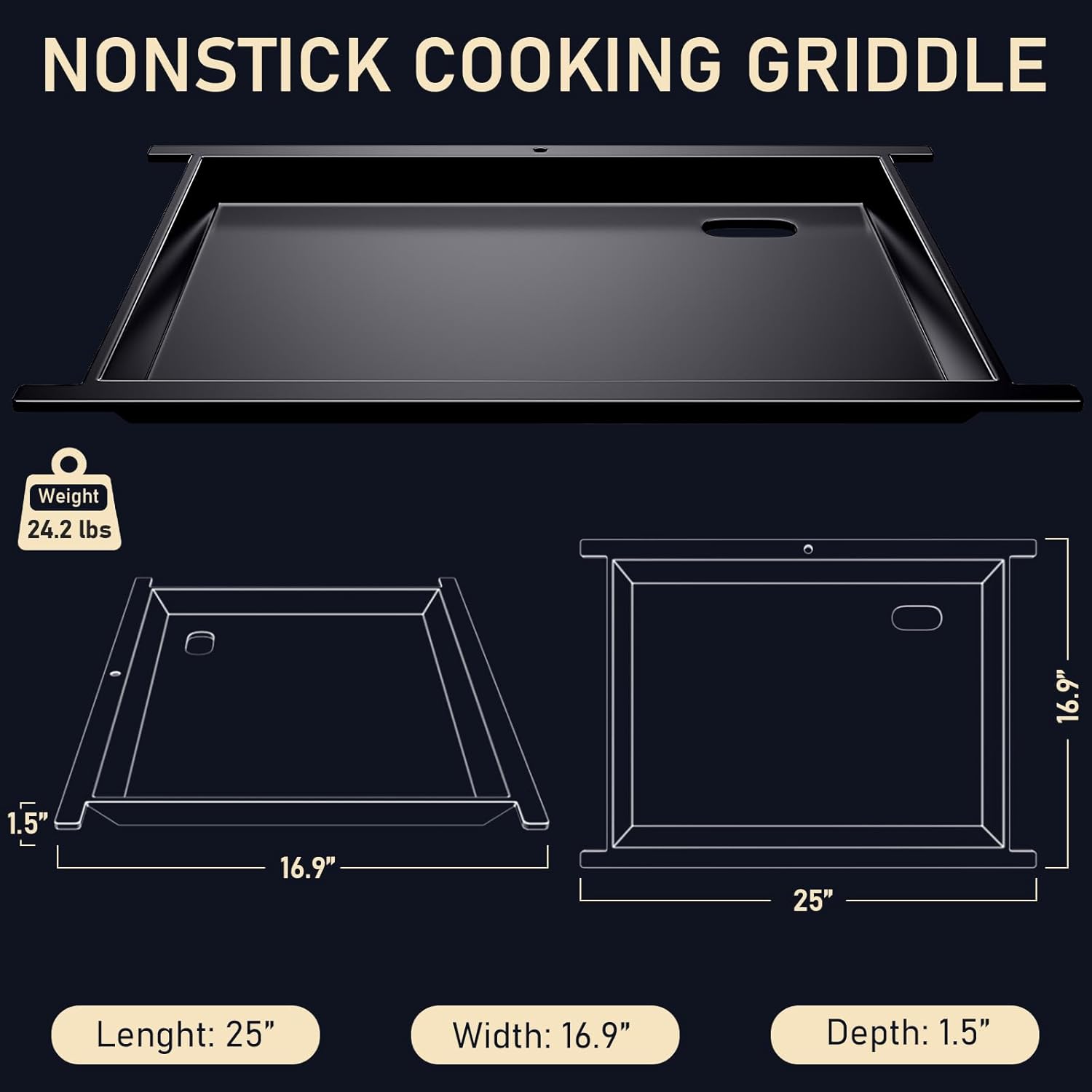- Big Surface, Big Meals: 25" x 16" surface cooks up to 16 eggs, 12 pancakes, or 12 burgers at once. Great for breakfast, BBQs, or camping. Grill bacon, eggs, and veggies together—no pan swapping, no cold food, just hot meals served fast