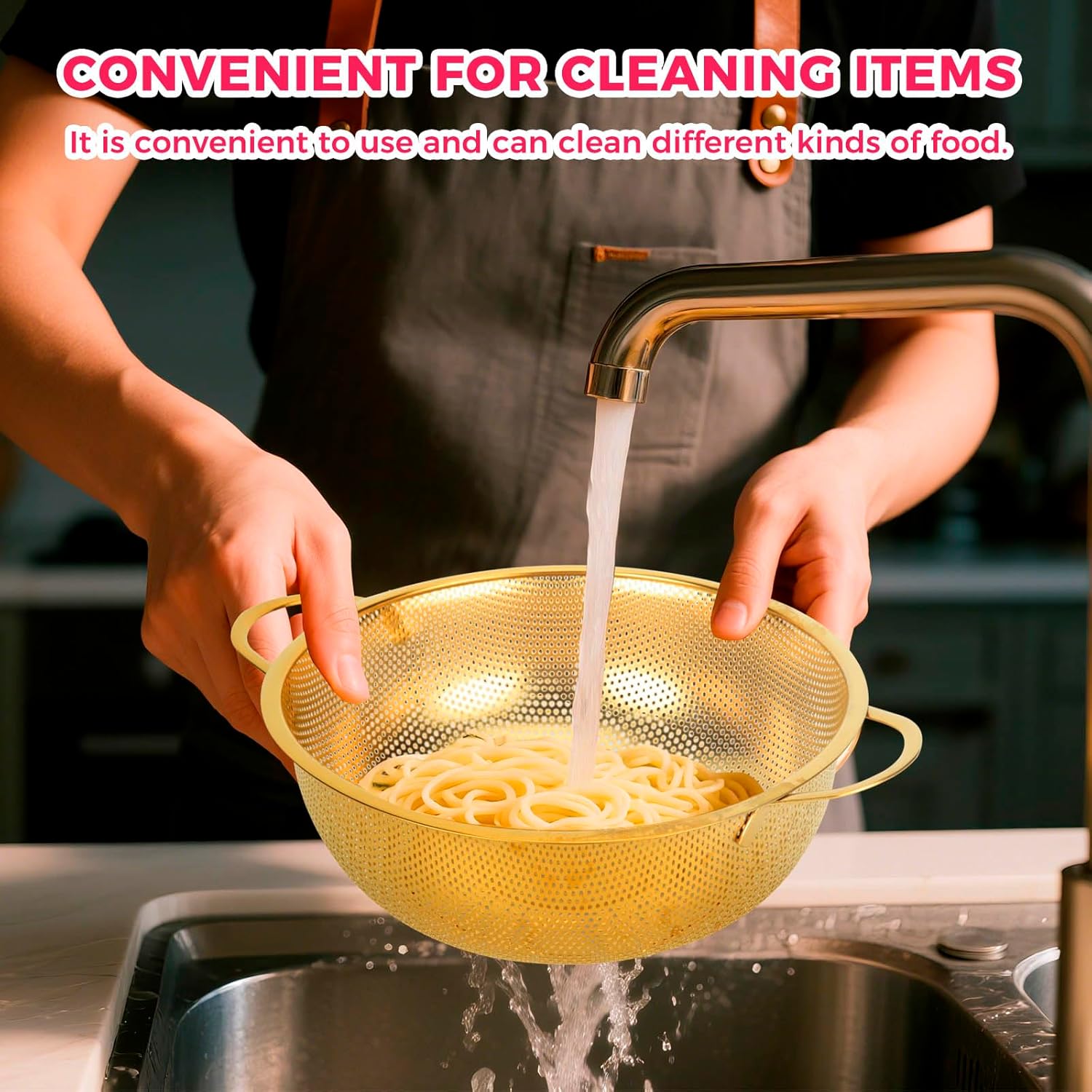 - [High Quality Material] The colander is made of stainless steel that designed to resist dents and rustproof. It has smooth, polished, corrosion-resistant surface. The edges are non sharp which makes you more comfortable and safe to use them.