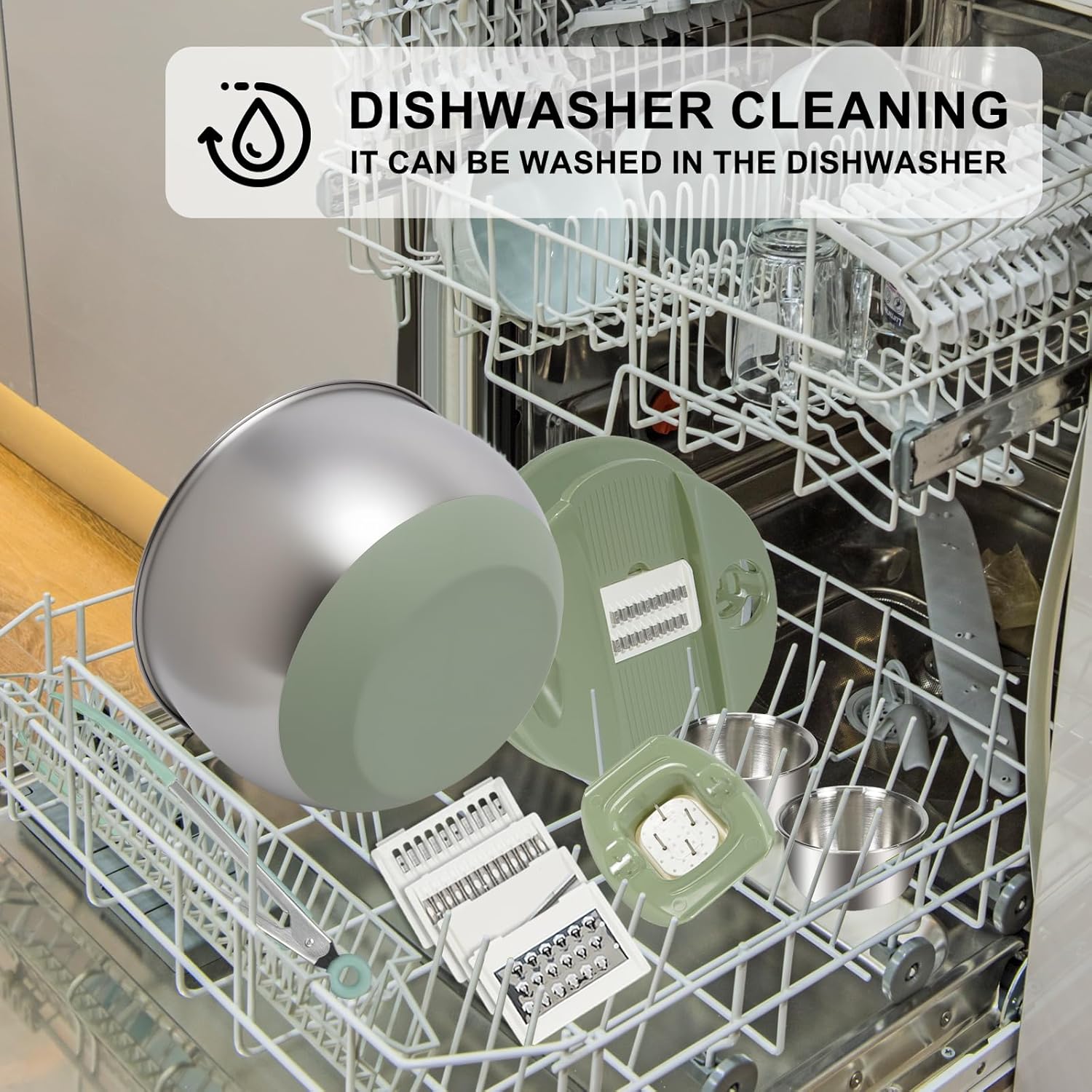 - 3-in-1 Multi-Functional Kitchen Tool: Streamline your meal prep with this all-in-one salad spinner, vegetable washer, and slicer. Equipped with 5 interchangeable stainless steel blades, it easily slices, shreds, and dices to suit a wide range of recipes—perfect for quick salads, stir-fries, and more.In addition, a dipping saucer and clip are also provided for your daily use.