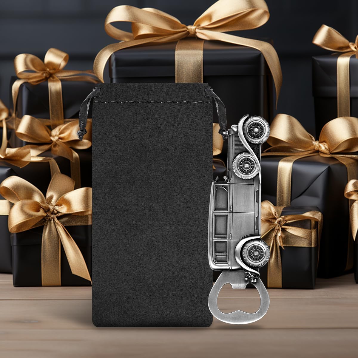 LKKCHER Car Bottle Opener, Classic Car Gifts for Men Him, Birthday Fathers Day Christmas Gifts for Men Dad Grandpa, Vintage Beer Accessories, Silver with Gift Bag