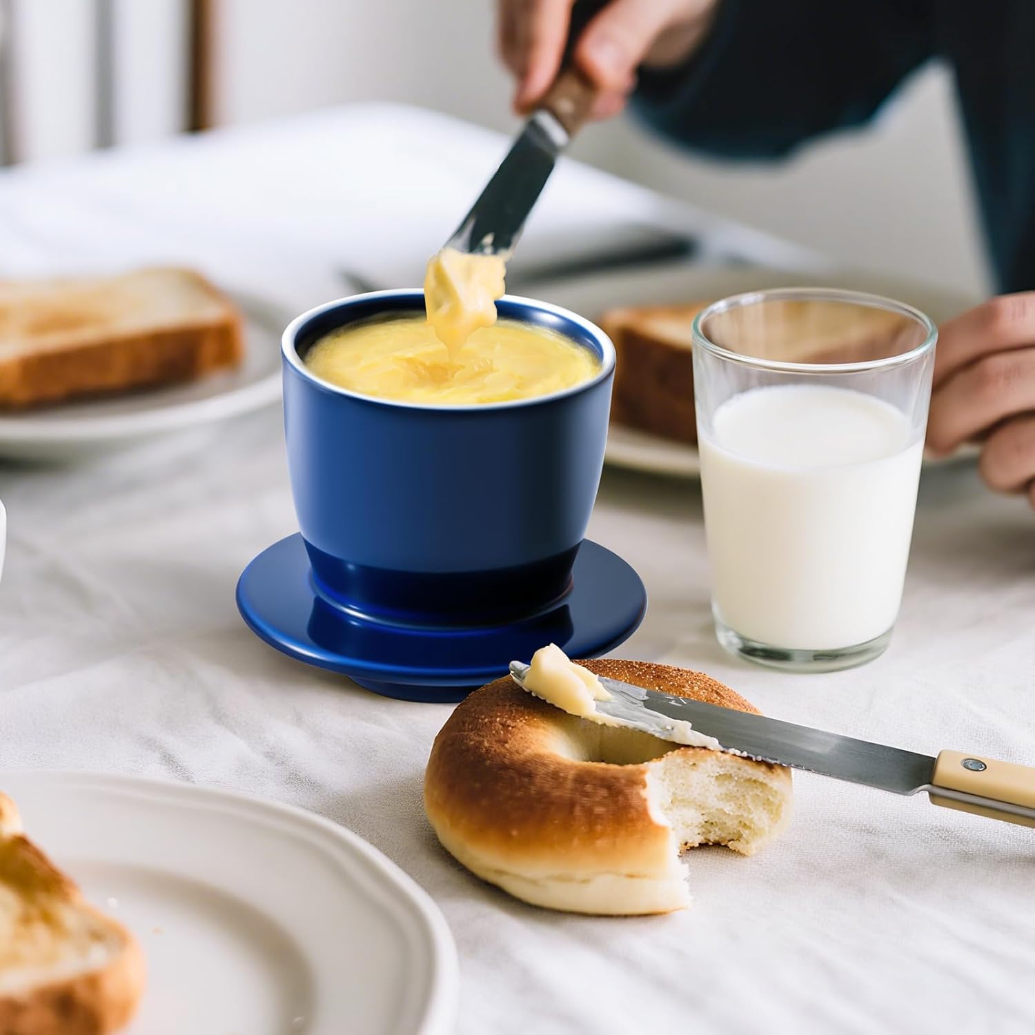 - 🧈ALWAYS SOFT, SPREADABLE BUTTER: Ditch the fridge frustration! Our butter crock keeps butter perfectly soft and spreadable — no more microwaving or awkward scrapin. The airtight water seal preserves freshness for up to 30 days (salted) and 10 days (unsalted). Enjoy velvety butter on toast, pancakes, or baked goods every time