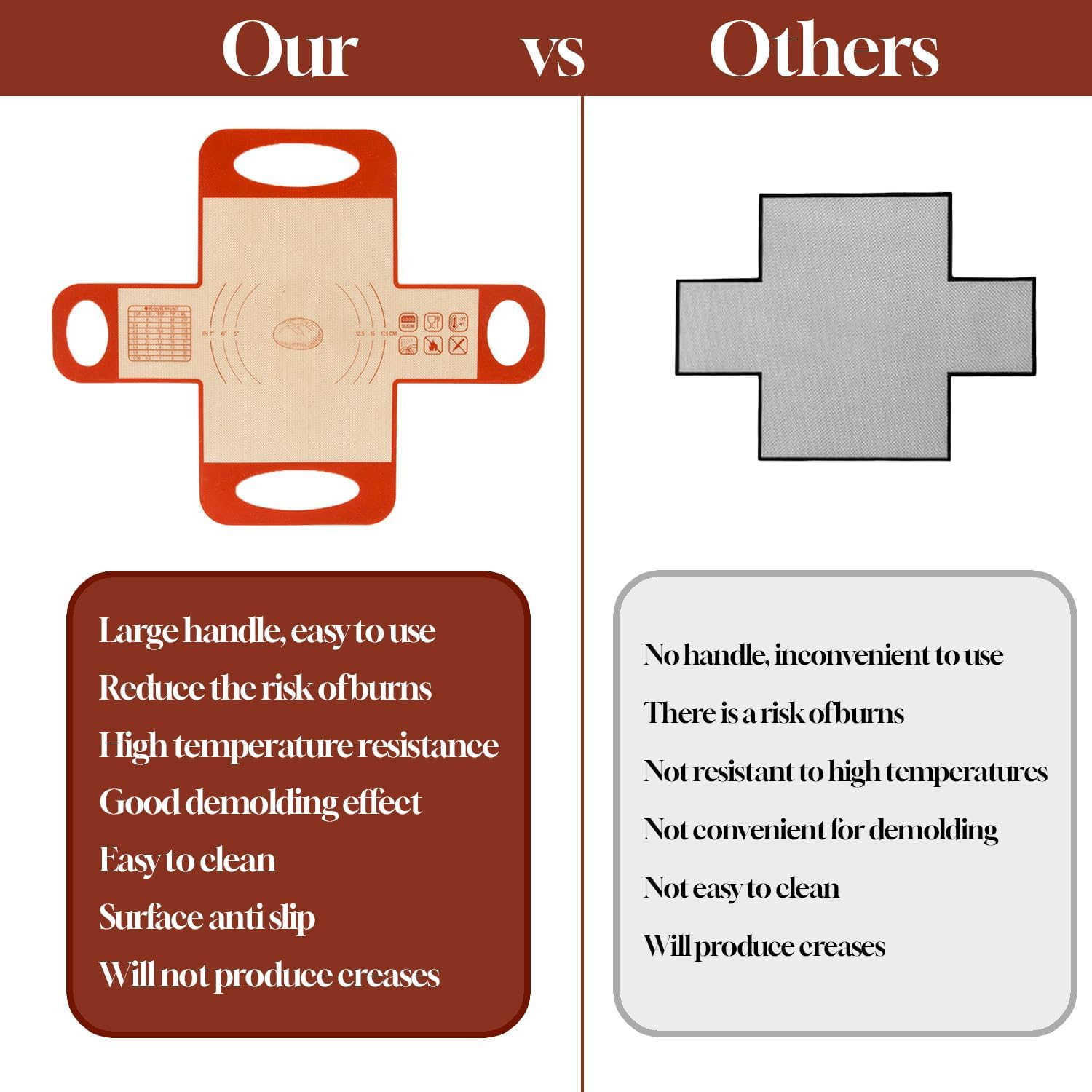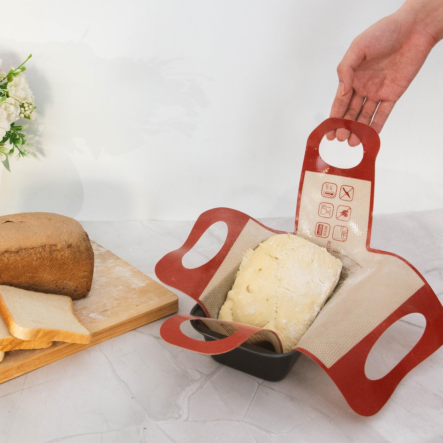 - 4 Handles Enhance Stability: Our bread loaf pan liners features a unique design with four sturdy handles. The silicone bread sling can help you safely transfer dough to the Dutch baking tray and avoid hand burns when placing and removing bread, perfectly meeting your baking needs.