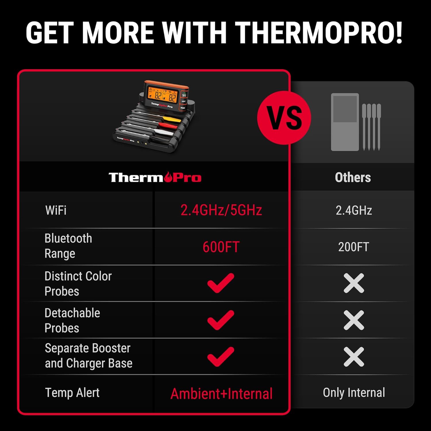 ThermoPro TempSpike Wireless Meat Thermometer Bluetooth,WiFi Unlimited Range, Detachable Thiner Meat Probe with1050°F Heat Resistance, Cooking Food Thermometer for Grilling BBQ Smoker, Orange