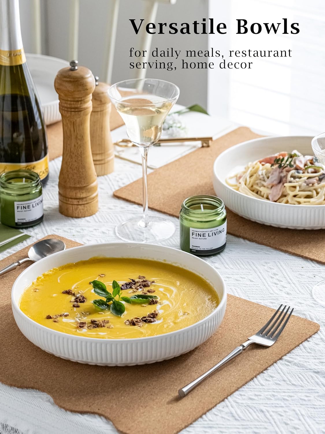 - Easy to Clean & Stackable: Crafted from thick, sturdy ceramic and finished with a smooth, glossy surface, these pasta bowls resist chips and stains. Oven, Microwave & Dishwasher Safe. They stack neatly to save space in your cupboard