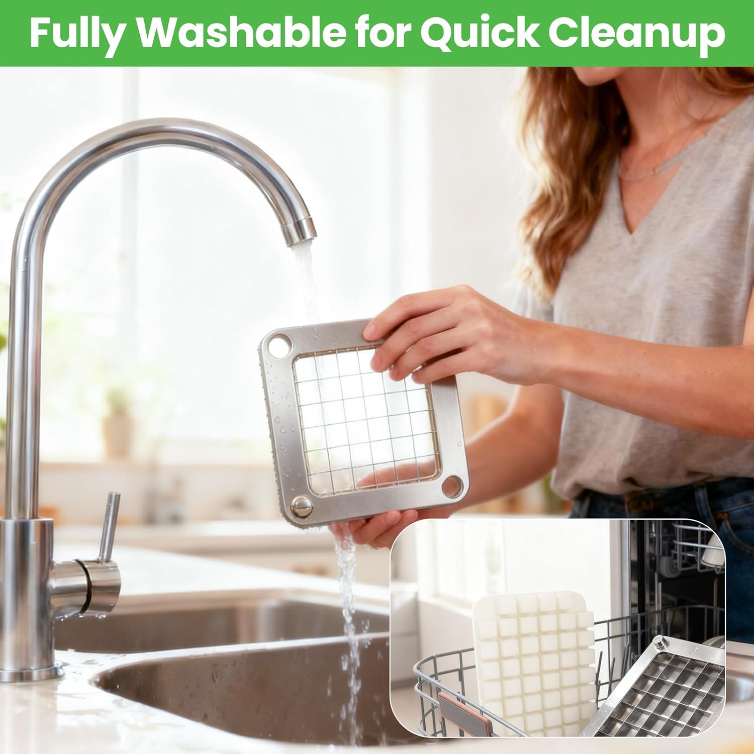 - Quick Install & Easy Cleaning โ Installs in minutesโjust attach, tighten, and insert. Washable with water or a simple kitchen brush for fast cleanup.