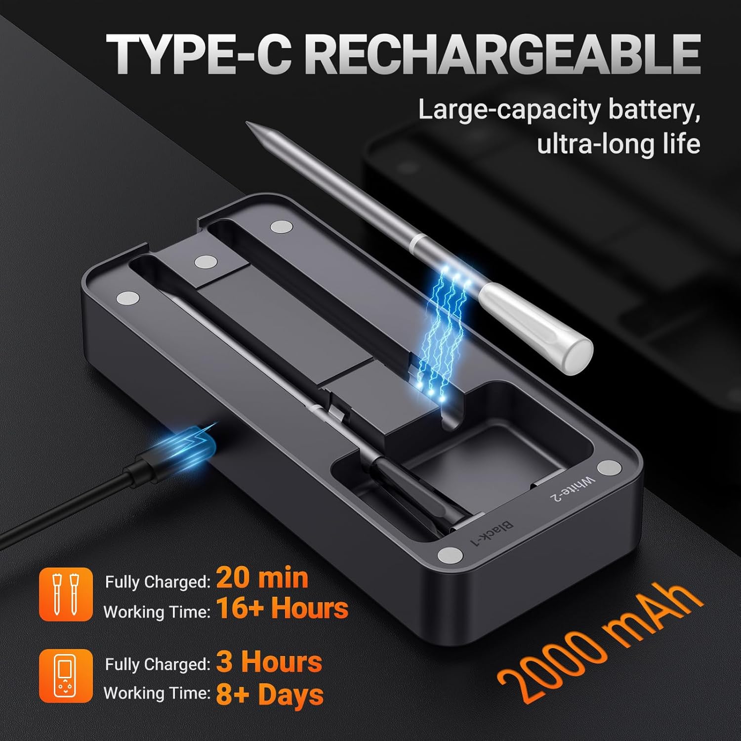- Type-C Rechargeable, Long Endurance Life: Built-in 2000mAh Lithium battery, the smart base can work more than 8 days if on a full charge, and 16 hours for probe of continuous working when fully charged. You can cook for a long time without worrying about lack of battery.