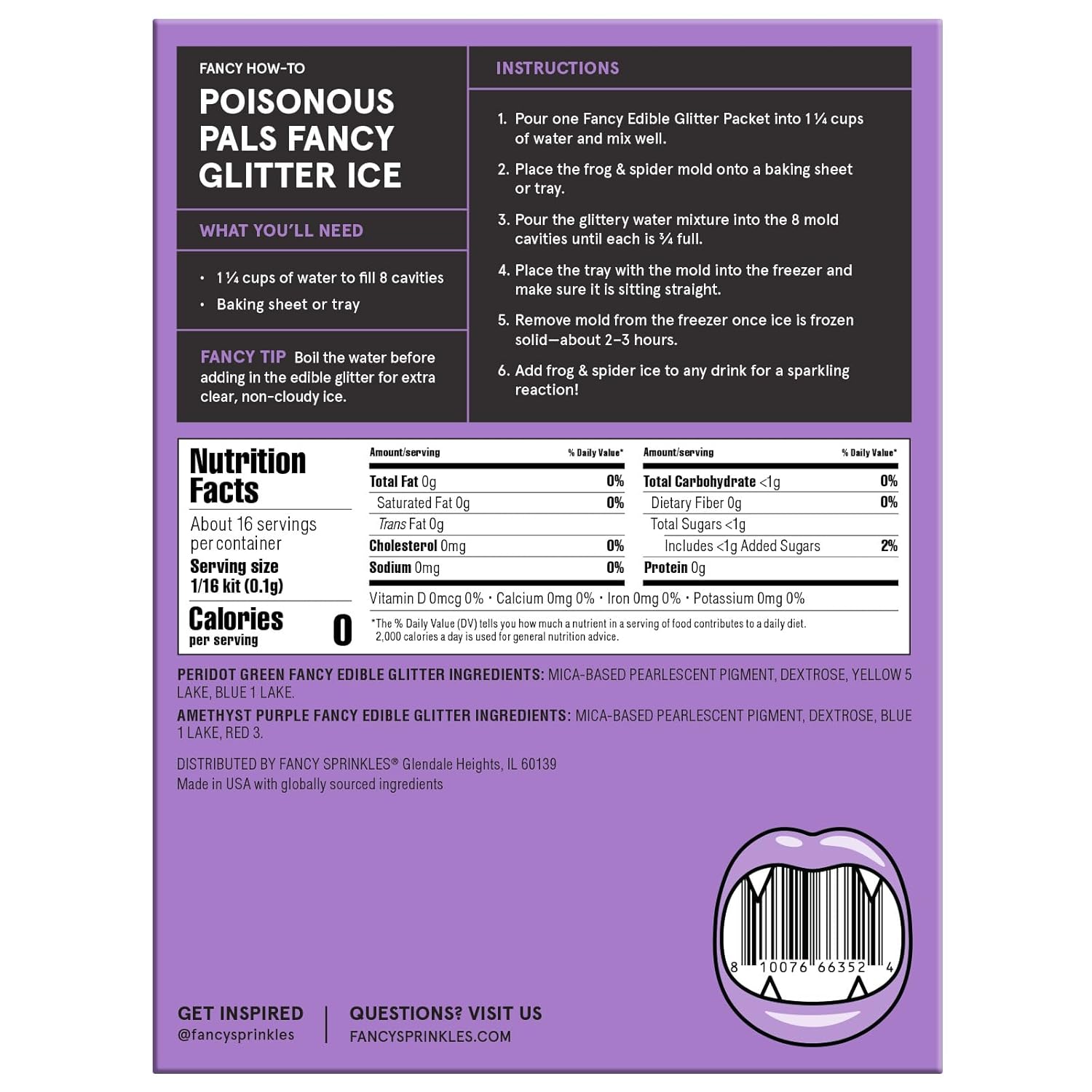 Fancy Sprinkles Limited Edition Halloween Poisonous Pals Glitter Ice Decorating Kit For Halloween Celebrations with Reusable Silicone Mold of Both Frogs and Spiders, and Two Colors of Edible Glitter