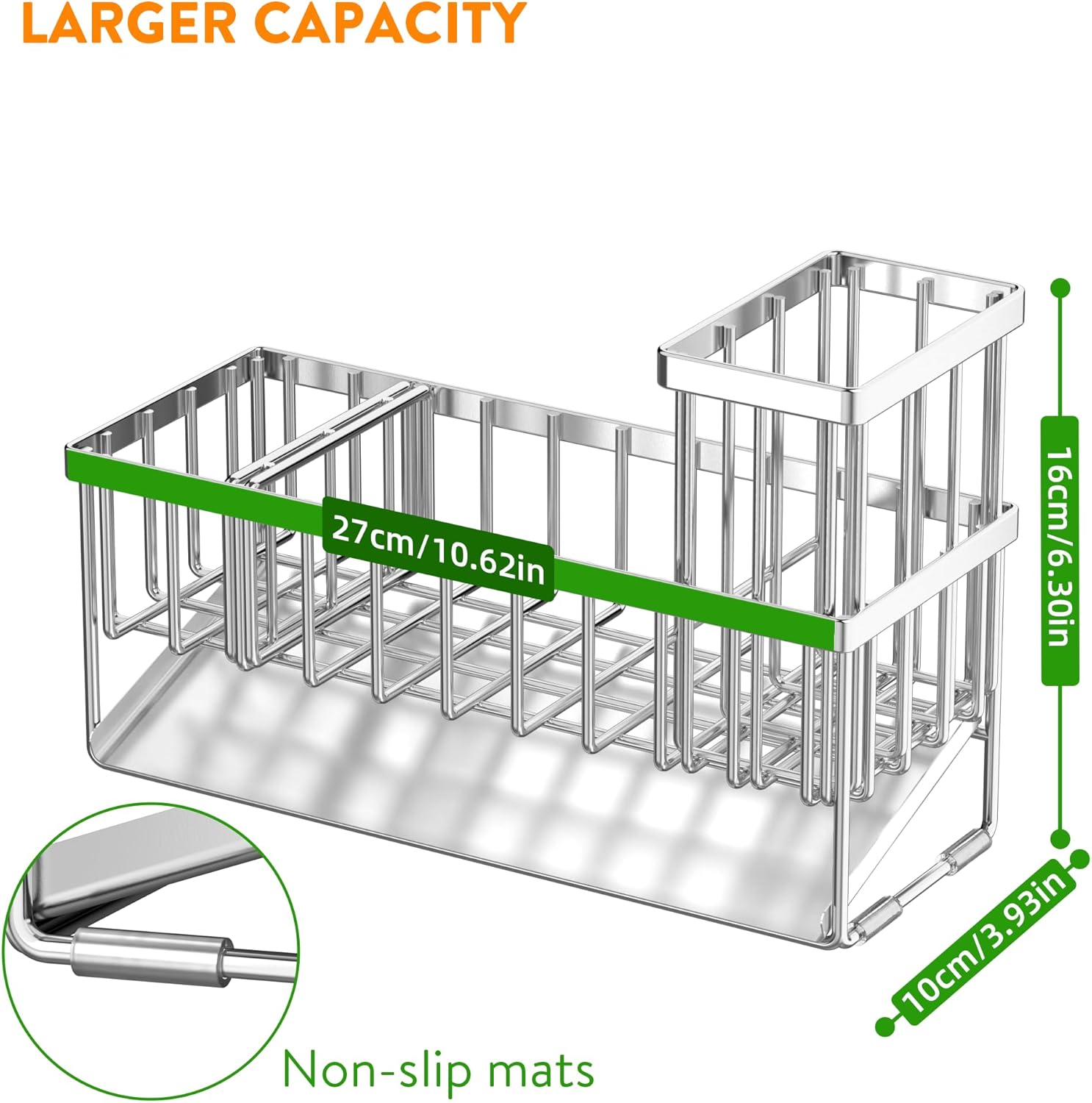- 【PREMIUM STURDY MATERIAL】 Cisily kitchen sink organizer is made of premium stainless steel which can effectively prevent rust and deformation. And you can clean it easily by rinsing it under a running tap. Take the clutter out of your countertops.