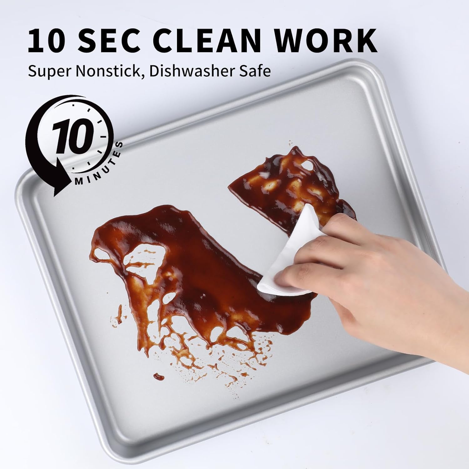 - ONE VERSATILE SET: This 3-piece rectangle baking pan set get perfect results with 3 essential depths: Small (8.7"x6.7"x1") for crisp cookies, Medium (11"x9"x1") for moist sheet cakes, and Large pan (13"x10.5"x1") for juicy chicken. From crispy to juicyโone set does it all!