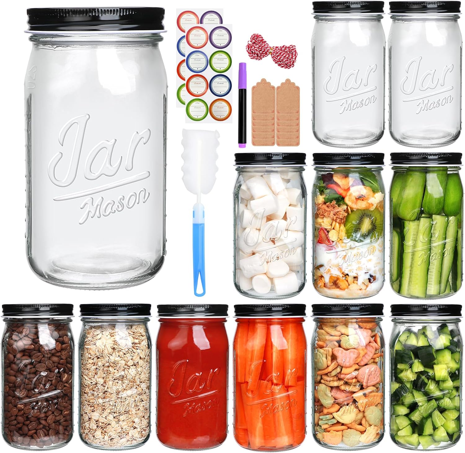 QAPPDA Wide Mouth Mason Jars 32 oz 12 Pack, Large Glass Jars Canning Jar with Lids for Pickling, Storage Food, Meal Prep, Jams, and Spices