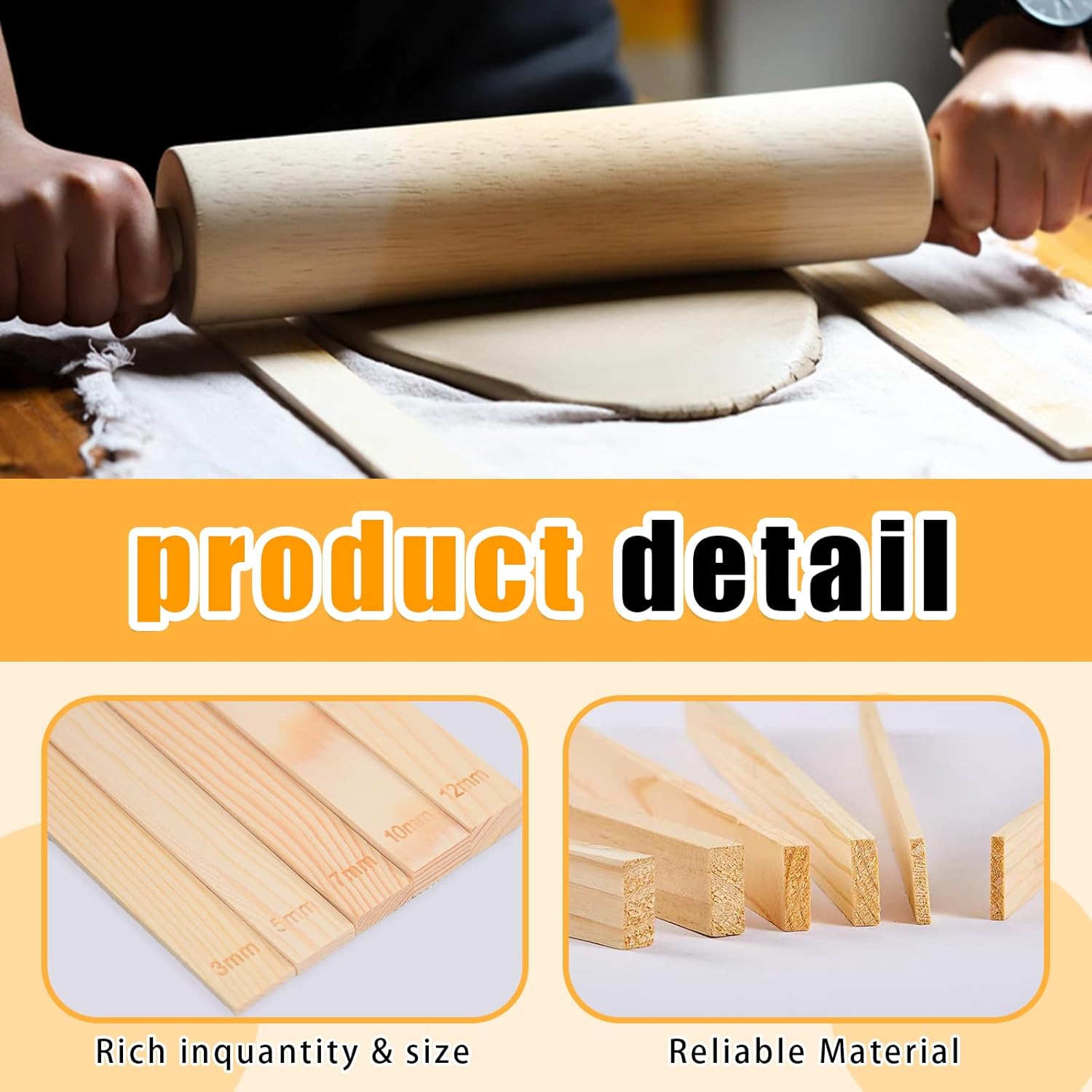 - 10-Piece 5-Size Wooden Thickness Guide Set:Includes 10 precision-cut guides (2 of each size:3mm/5mm/7mm/10mm/12mm) in 13.4inch length,perfect for achieving uniform clay thickness in polymer,pottery,and air-dry clay projects