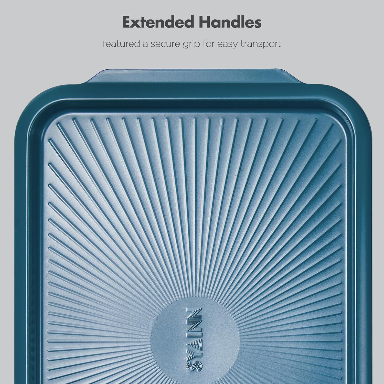 SYAINN Non-stick Ceramic Baking Sheet Set, 3 Pieces- Aluminum Steel Cookie Sheets for Baking-Includes Half/Quarter/Jelly Roll Pans-Warp Resistant, Toxic, PTFE & PFOA Free-Blue