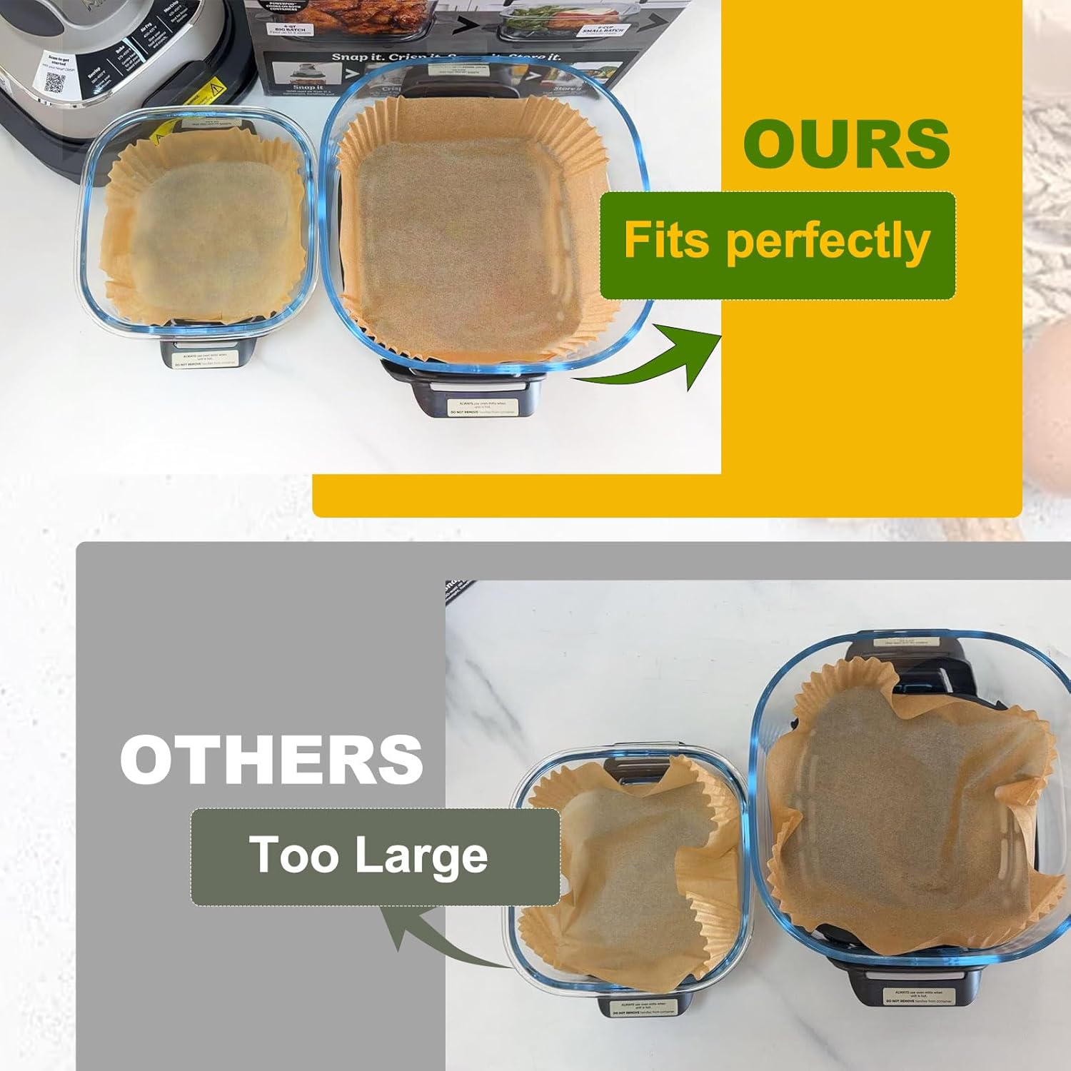 - Easy to Use: The Non-Stick parchment paper compatible with glass air fryer non toxic are designed with a square bowl shape, which do not need to tear, fold, cut, nor bend, and you can directly put it in when you are ready to cook.