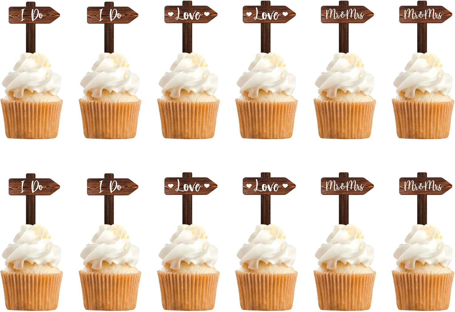12 PCS Wedding Cupcake Toppers in Wood Rustic Wedding Cake Decoration