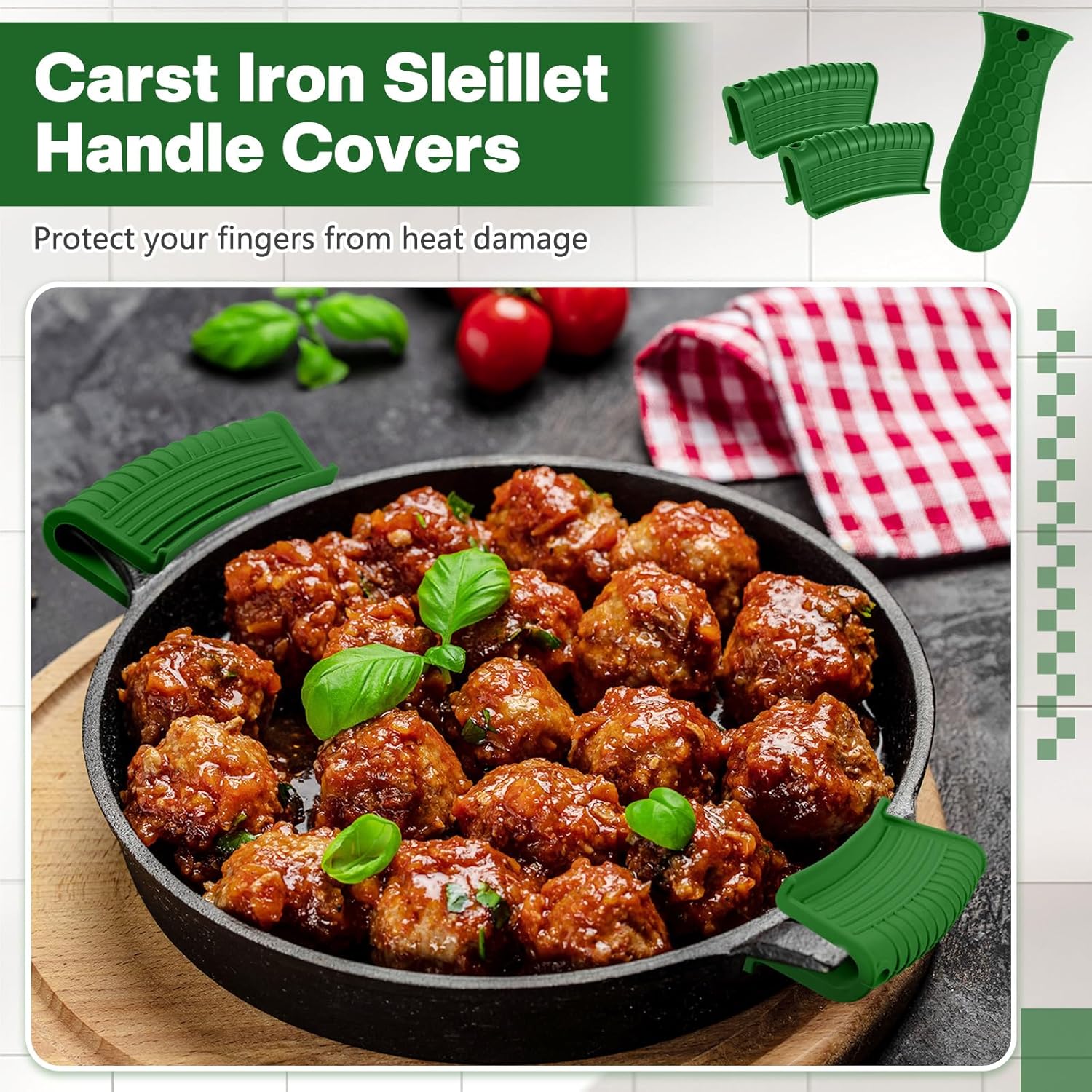 Patelai 8 Pcs Silicone Pot Holders Cast Iron Handle Cover Heat Resistant Pot Handle Covers Potholder Non Slip Reusable Pan Sleeve for Frying Pan Kitchen Supplies (Matcha Color)