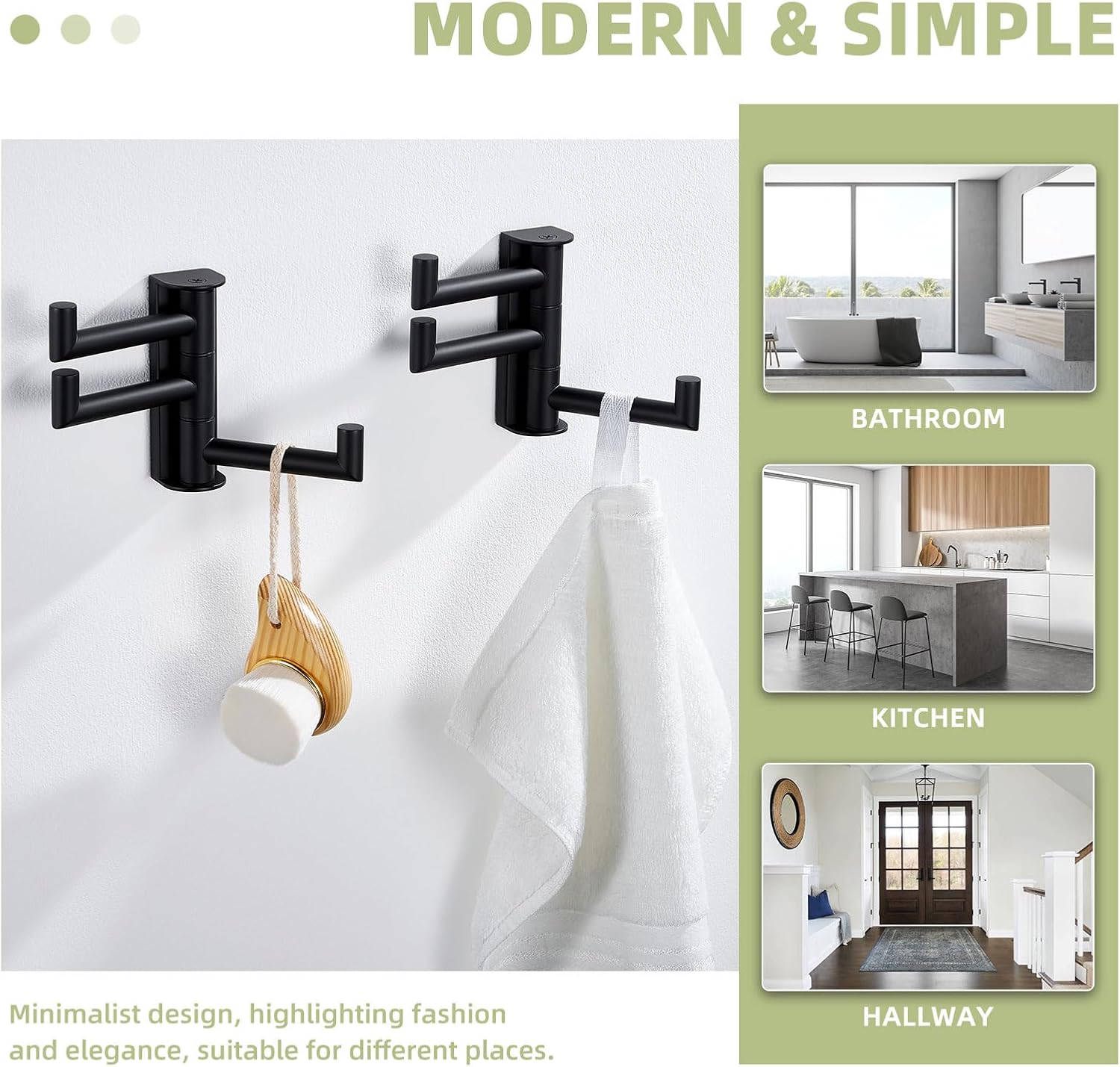 Suyar Towel Hook for Bathroom, SUS 304 Stainless Steel Swivel Coat Robe Holder with 3 Foldable Arms, Wall Hook Matte Black, 2 Pack