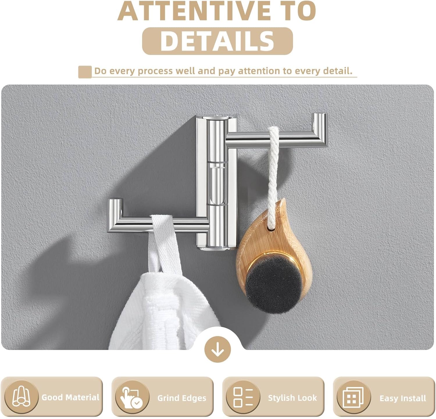 Suyar Bathroom Towel Hook Polished Chrome, SUS 304 Stainless Steel Swivel Robe Hook with 3 Arms, Towel Hanger Wall Mounted