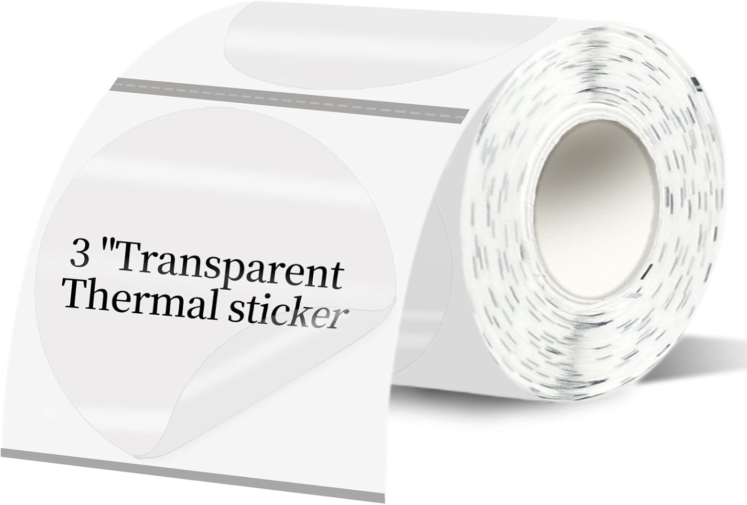 3''Transparent Thermal Label,Round Self-Adhesive Direct Thermal Label,Thermal Stickers for DIY Logo Design,Name Tag(200/Roll