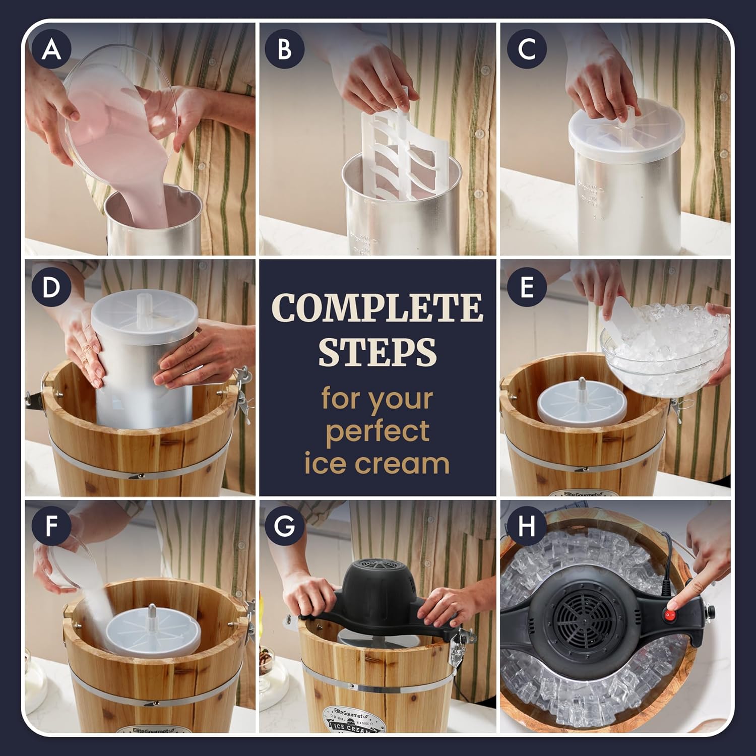 Elite Gourmet EIM916X Old Fashioned 6 Quart Vintage Wood Bucket Electric Ice Cream Maker Machine Appalachian, Bonus Classic Die-Cast Hand Crank for Churning, Uses Ice and Rock Salt