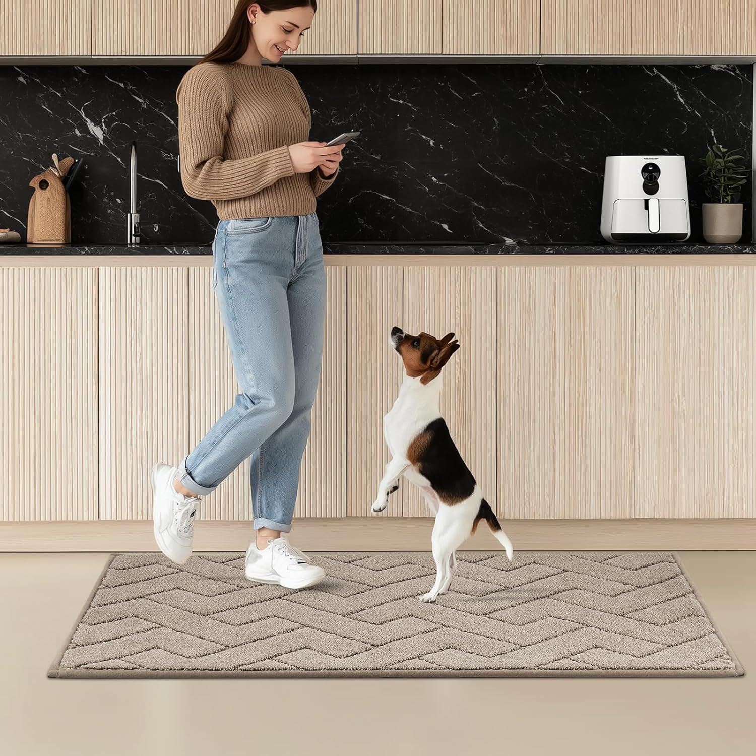 Machine Washable Kitchen Rugs 24" x 70", Non-Slip Kitchen Runner Rugs Mats for Floor, Absorbent Comfort Standing Mats for Kitchen, Sink, Laundry and Hallway, Rolled Packaging, Taupe