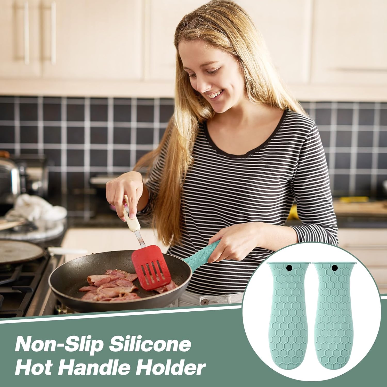 - Thoughtful Design with Anti-slip Texture: featuring a specially designed anti-slip texture and internal silicone ribbing, these cast iron handle sleeves effectively prevent slips and drops while handling hot cookware; This thoughtful design not only enhances safety but also allows for a confident grip, ensuring that you can maneuver hot pots and pans without fear of burns or accidents in the kitchen