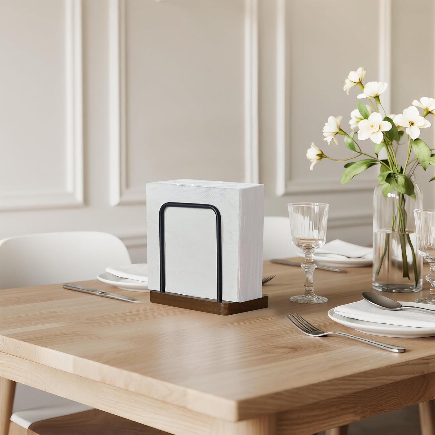 - Universal & Stylish Design. Holds most napkin sizes with its sleek, contemporary profile. Designed to blend effortlessly with any dining aesthetic, this holder adds a touch of refined elegance to your space—whether it's a formal dinner setup or a casual kitchen counter.