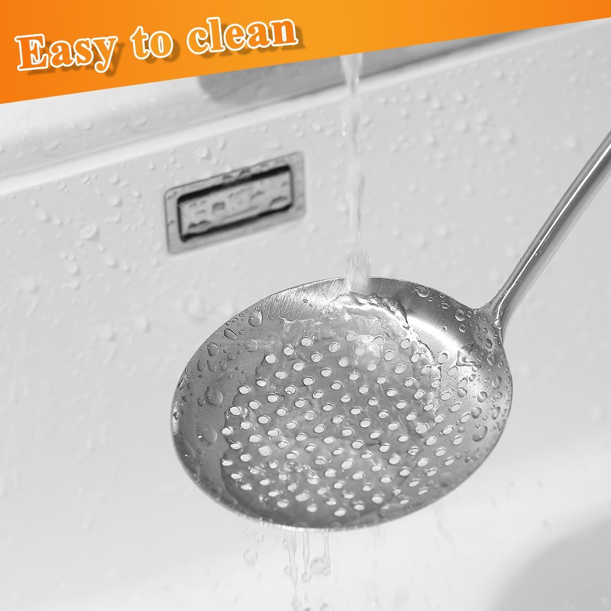 - 4. Effortless Cleaning and Maintenance: This stainless steel skimmer is dishwasher safe, saving you time and effort in the kitchen. Simply place it in the dishwasher after use for a thorough clean, or wash it by hand with warm soapy water. Its smooth surface resists stains and food buildup, ensuring it remains in pristine condition with minimal maintenance.