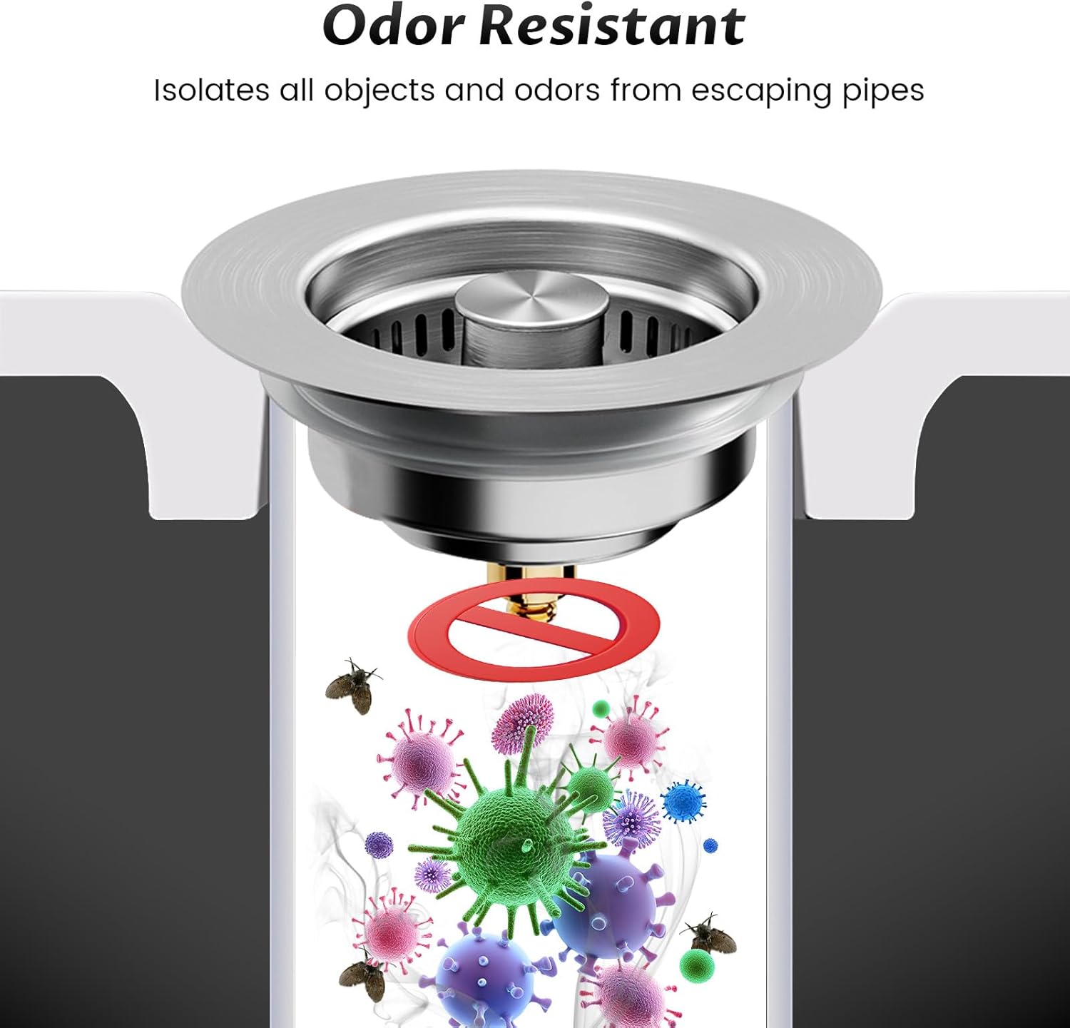 - Compatible with Standard US Sink Drains:Fits most 3.5-inch kitchen drains (2.95–3.42" diameter, depth ≥1.46"). making it convenient for multi-sink setups or keeping a spare