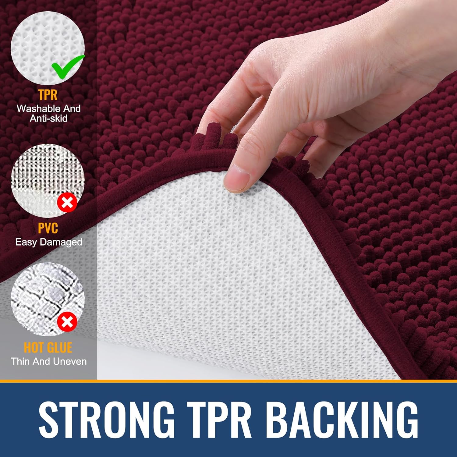 Arotive Bathroom Rugs 36x24, Extra Soft Absorbent Shaggy Chenille Bath Rugs, Machine Washable Rubber Backing Non-Slip Bath Mats for Bathroom Floor Tub and Shower, Home Decor Accessories, Burgundy