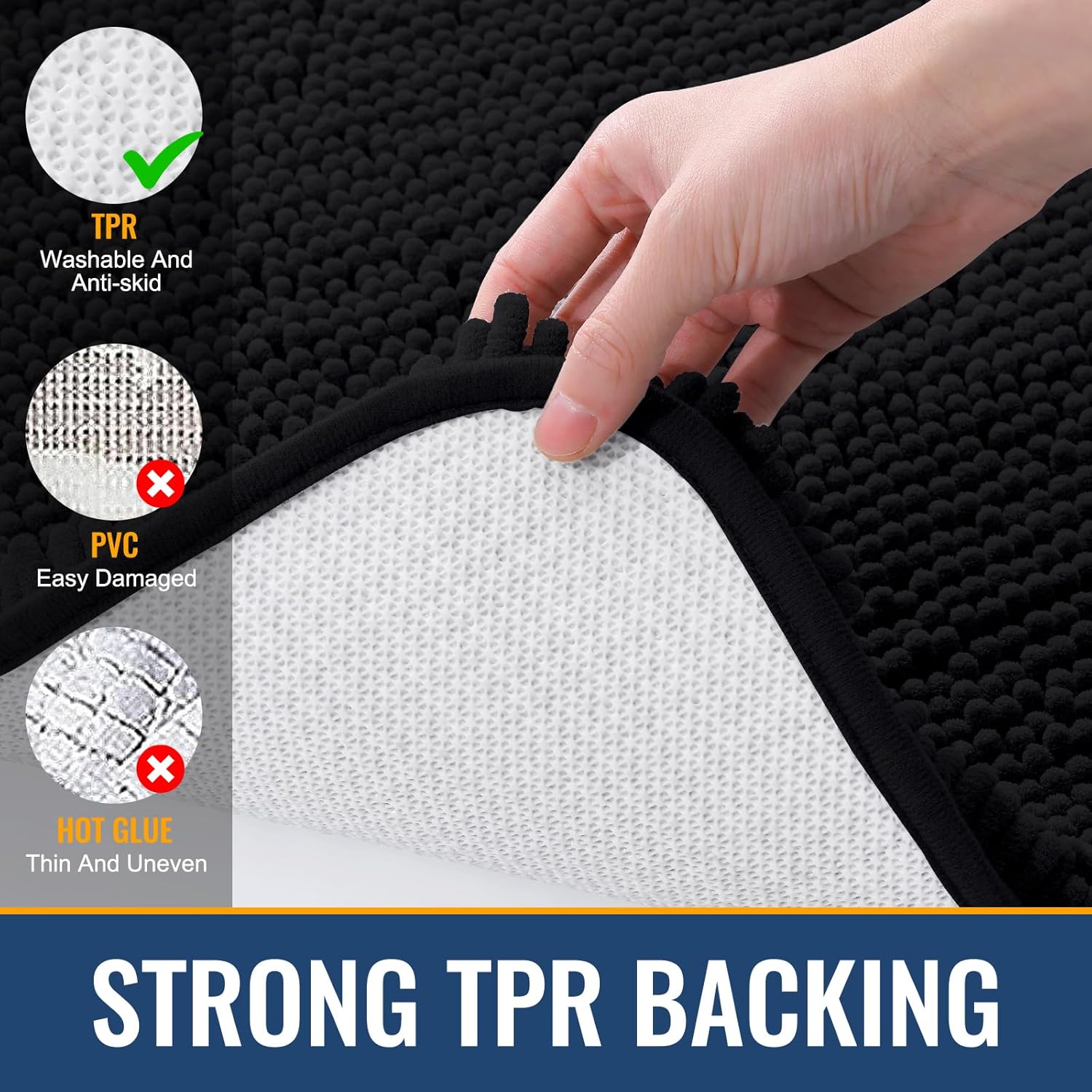 Arotive Bathroom Rugs 30x20, Extra Soft Absorbent Shaggy Chenille Bath Rugs, Machine Washable Rubber Backing Non-Slip Bath Mats for Bathroom Floor Tub and Shower, Home Decor Accessories, Black