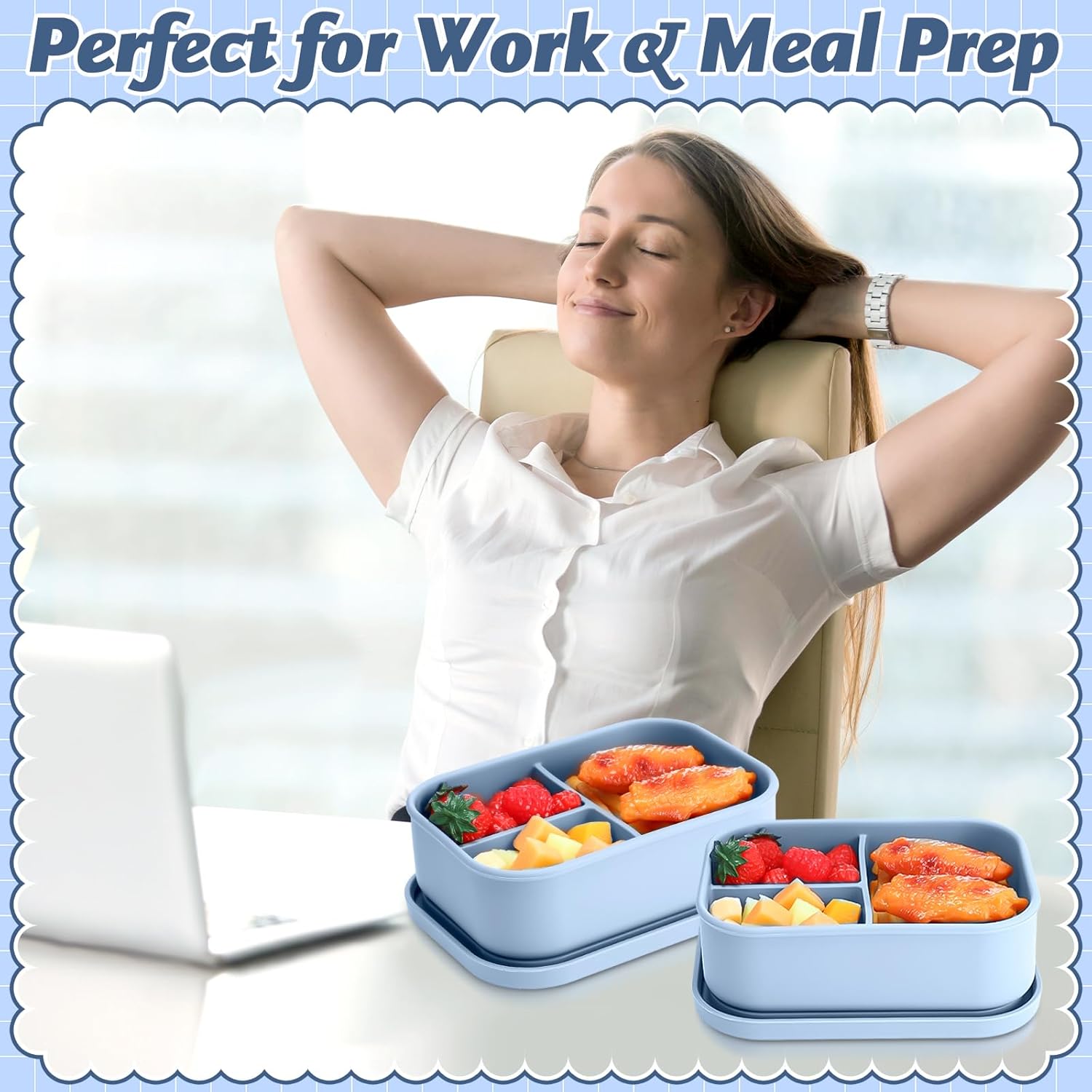 - Adequate space in compartments: Each silicone lunch box has 3 compartments, providing ample space to comfortably accommodate your meals. This design not only allows your food to be neatly separated, but also helps control portions and promote a balanced diet