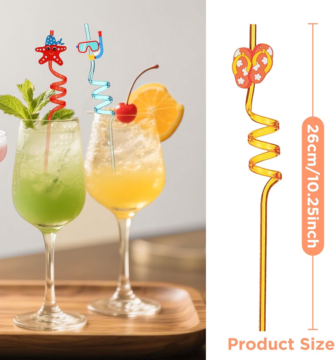 - PARTY SUPPLIES --- Each twisty straw is 26 cm/10.2 inch long (unstretched), with a straw mouth diameter of 0.5 cm/0.2 inch. 8 different colors of straw bodies, 2 for each color. Very suitable for beach or pool parties