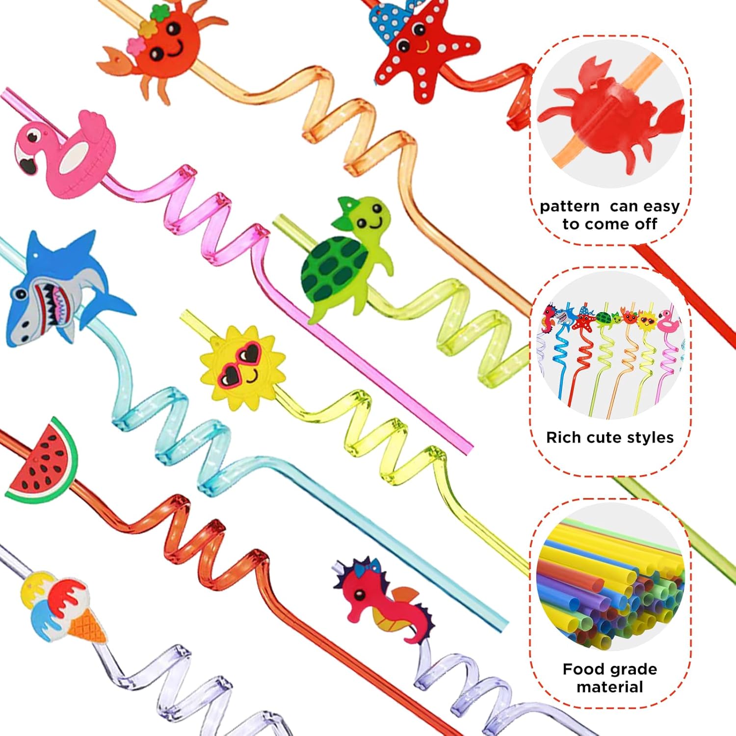 - FUN PATTERN DESIGN --- The straw decoration pattern include SEA ANIMAL series and BEACH series. The pattern decoration is made of PET material, which is soft and elastic, and can be disassembled and placed in other places for decoration
