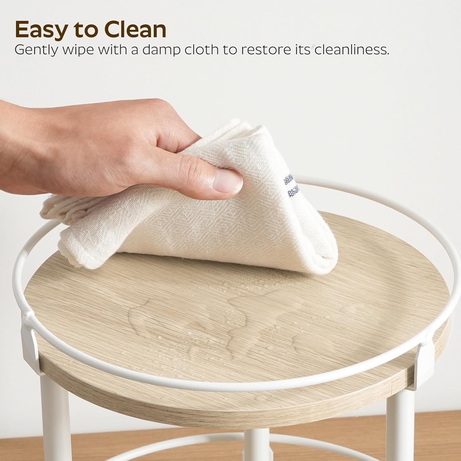 Lazy Susan Organizer, Rotating Spice Rack, 3 Tier Spice Turntable Organizer, Industrial Turntable Spice Holder, for Kitchen Countertop, Compact and Versatile, White and Light Oak SR23WG