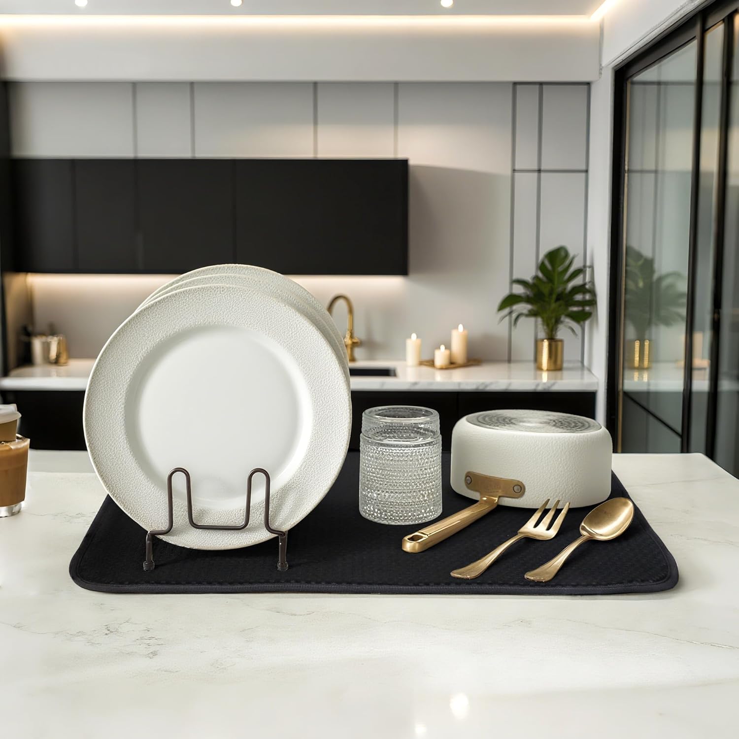 - Black Dish Mats – Modern & Practical: This set includes the 20" x 15" dish drying mats in classic black—stylish, stain-resistant, and great for any modern kitchen decor