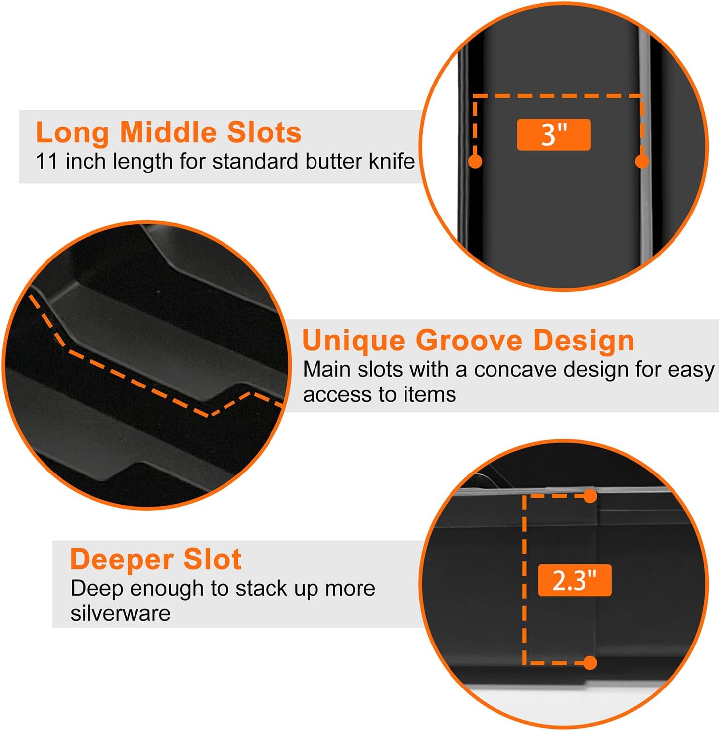 - Durable & Safe: Crafted from 100% new ABS plastic, this silverware drawer organizer tray is BPA-free, shatter-resistant, and built to last. Our drawer divider's smooth edges protect utensils from scratches, while the sturdy construction withstands daily use—making it a reliable drawer utensil organizer for years to come