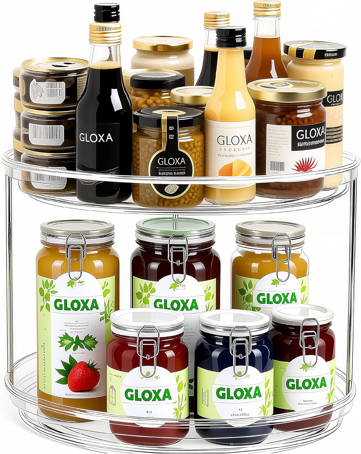 - Maximize Storage Capacity: Effortlessly organize your kitchen pantry, bathroom vanity, medicine cabinet or makeup countertop with GLOXA 2-tier lazy Susan organizer. It doubles your storage area, perfectly storing seasonings, spices, cans, makeup products and more, all while taking up minimal counter or cabinet space.