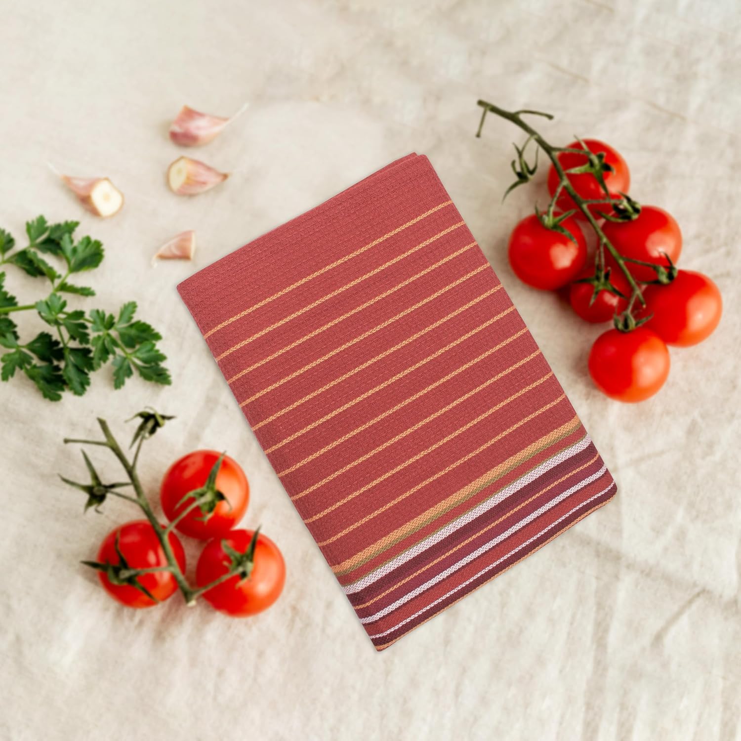 Urban Villa Fall Kitchen Towels 100% Cotton Highly Absorbent Dish Towels Rust Color Set of 6 Size-20"X30" Waffle Salsa Stripes Thanks Giving Dish Cloths & Dish Towels with Hanging Loop Tea Towels