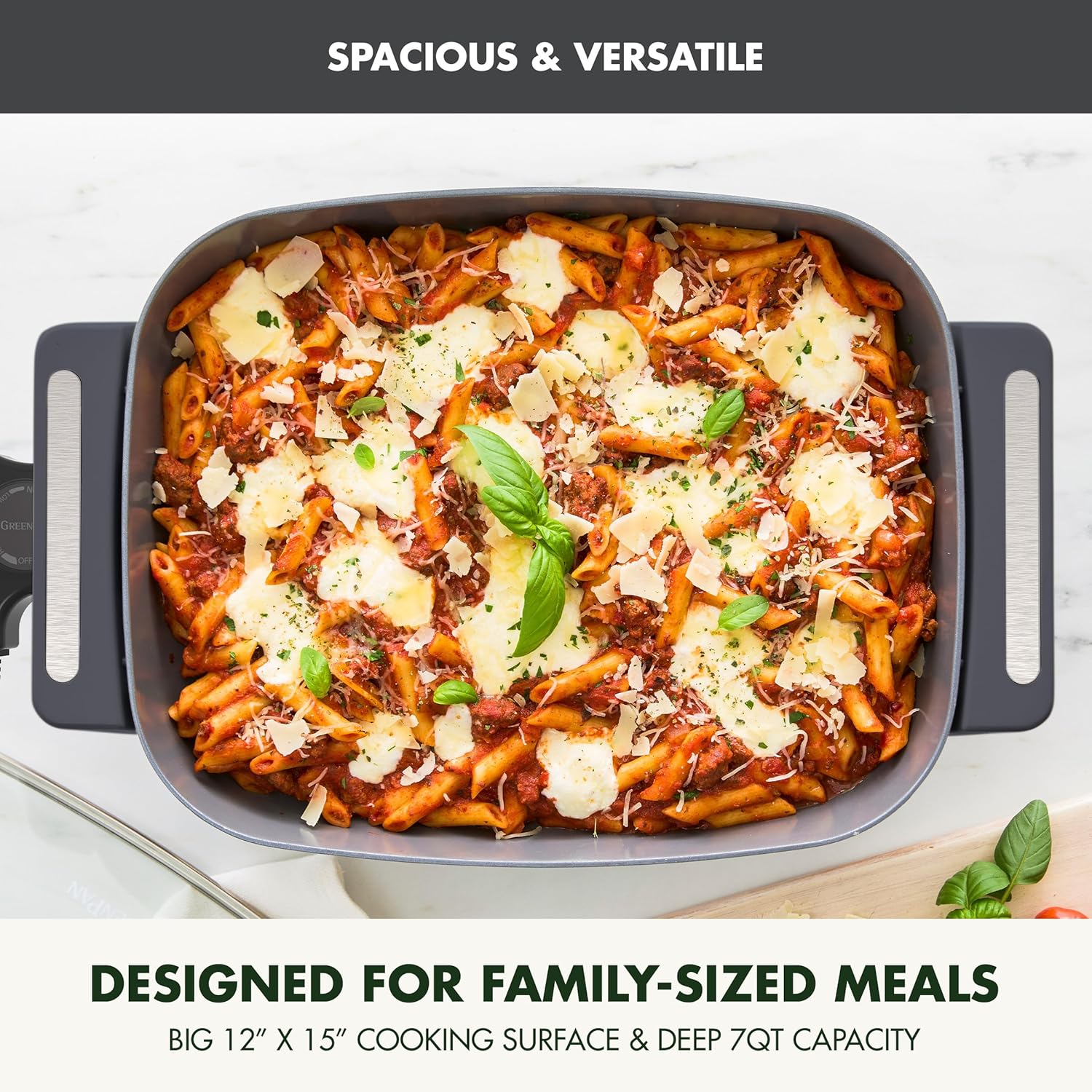 GreenPan Advanced 12” X 15” Electric Skillet with Lid, 7QT Capacity for Family Meals, Healthy Ceramic Nonstick PFAS-Free Coating, Fry, Sauté, Steam, Simmer, Sear, Stir Fry, Dishwasher Safe, Graphite