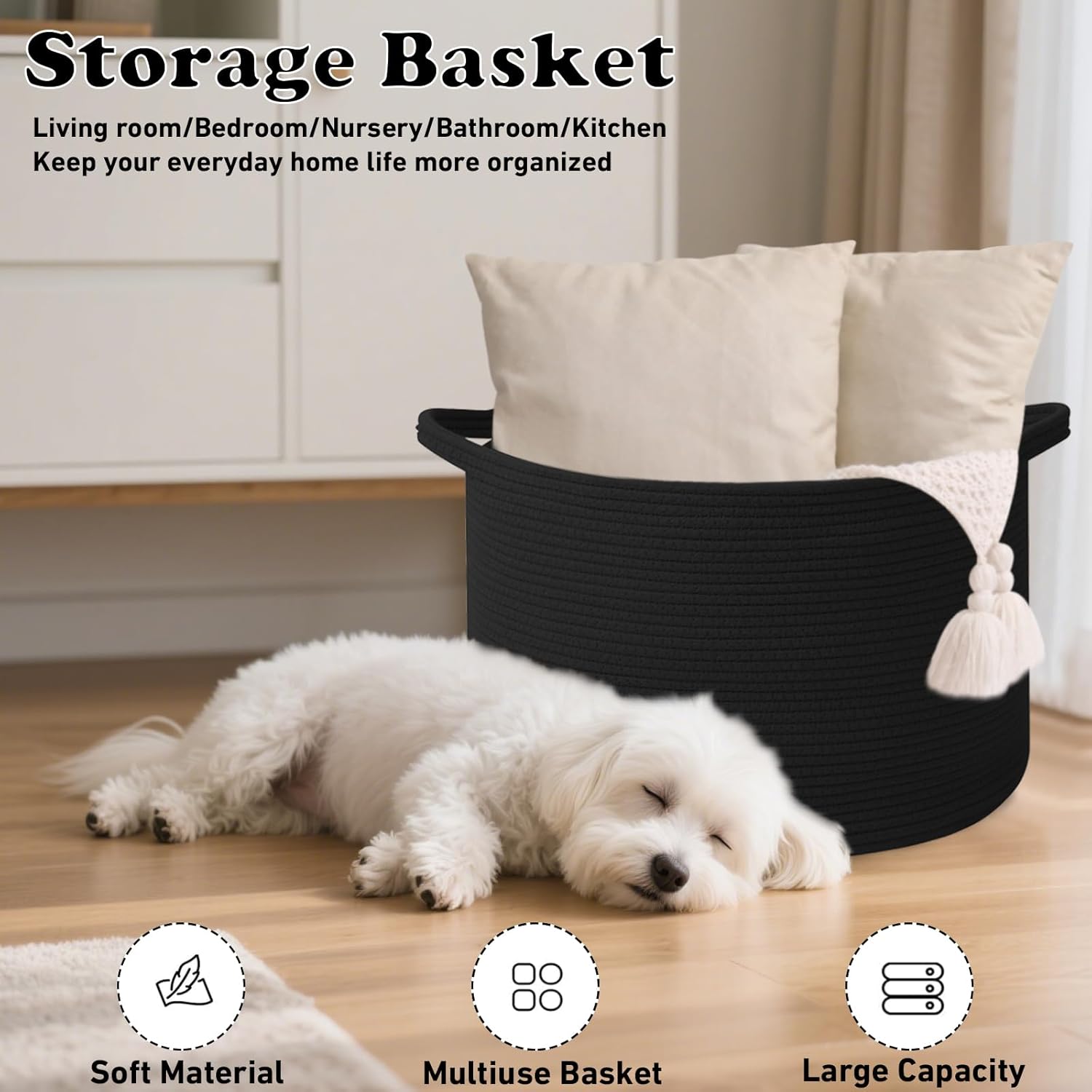 Large Blanket Basket for Organizing,115L Closet Organizers and Storage Bins Box for Shelves Woven Rope Storage Baskets,Living Room,Bedroom,Dorm,Laundry room (Black)
