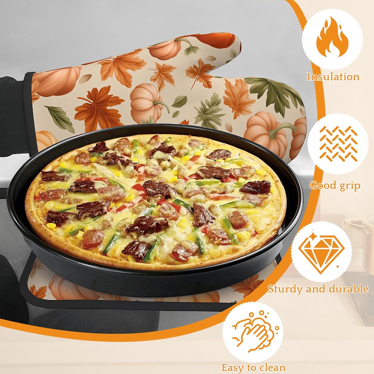 Fall Pumpkin Oven Mitts and Pot Holders,Maple Leaf Heat Resistant Oven Mitts Gloves and Pot Holder for Home Kitchen Decorations Cooking Baking BBQ Gifts,Set of 4