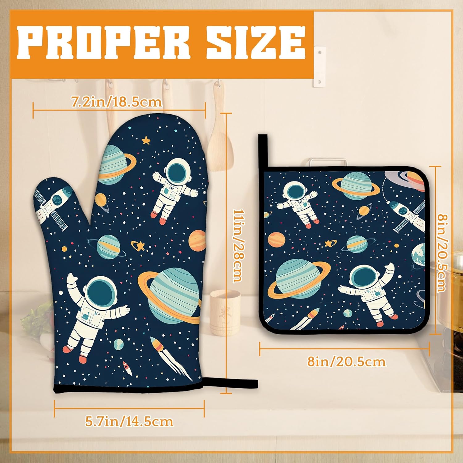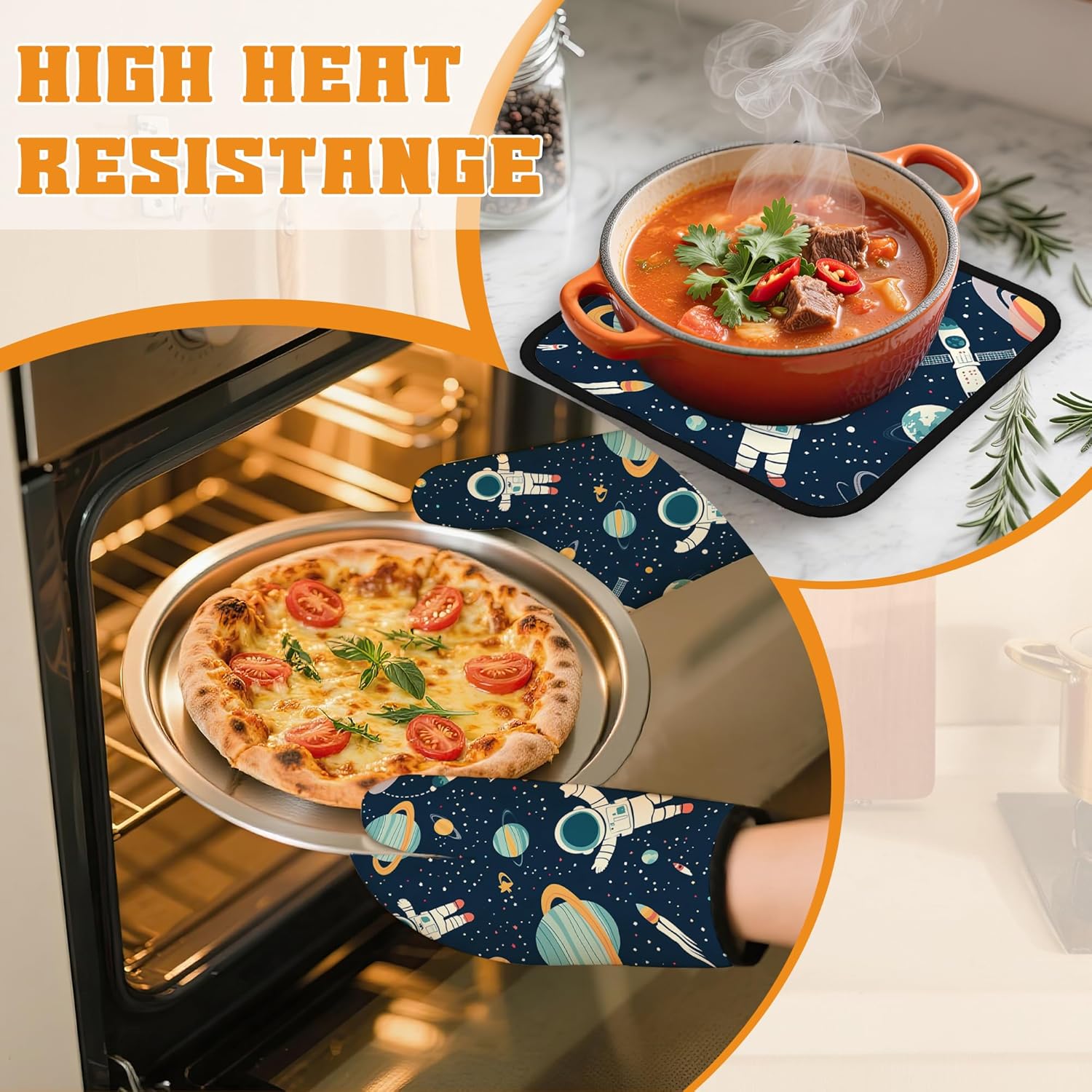 Astronaut Oven Mitts and Pot Holders,Planet Heat Resistant Oven Mitts Gloves and Pot Holder for Home Kitchen Decorations Cooking Baking BBQ Gifts,Set of 4